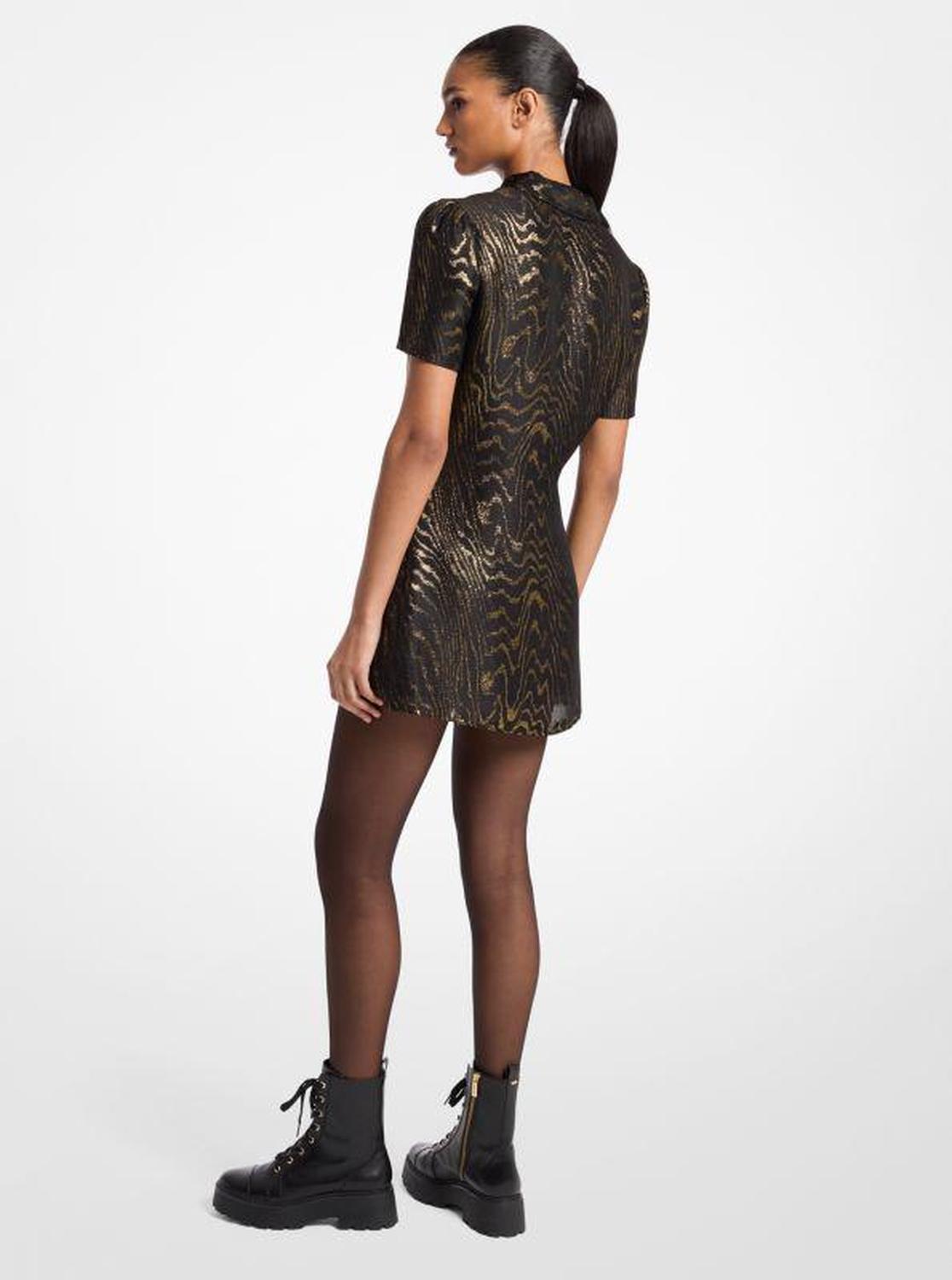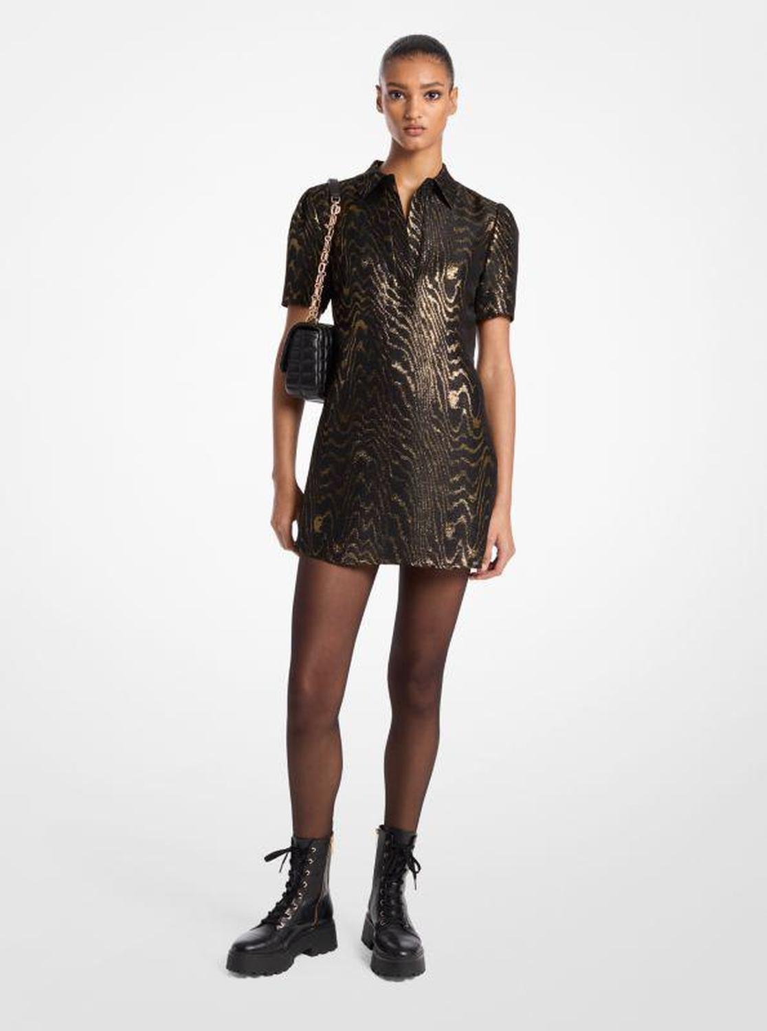 Made from a luxe silk blend that’s woven with a metallic, moiré effect, this shimmering shirtdress is finished with a point collar and button placket. Short and chic, it’s guaranteed to earn compliments.