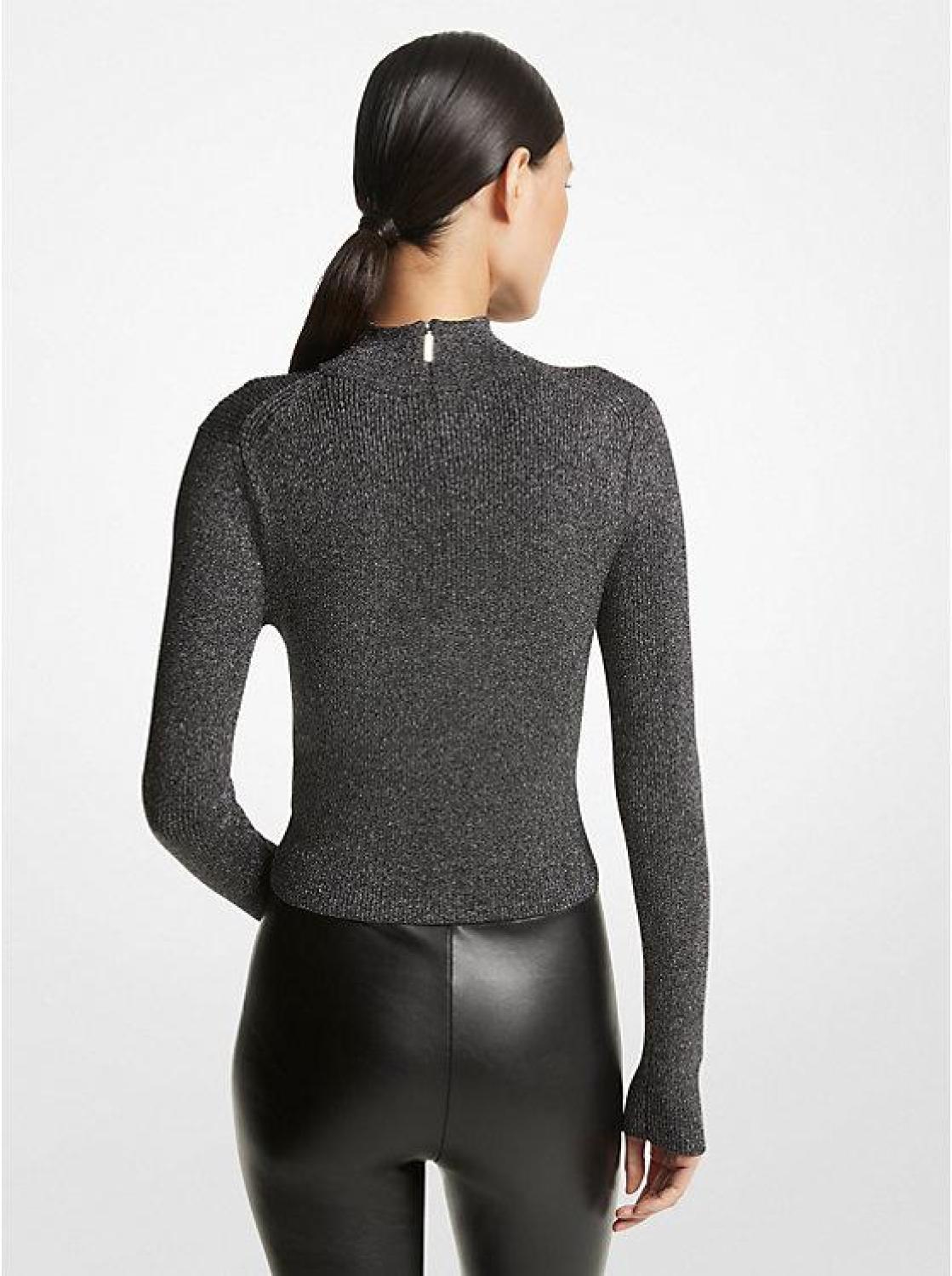 Metallic Ribbed Knit Cropped Sweater