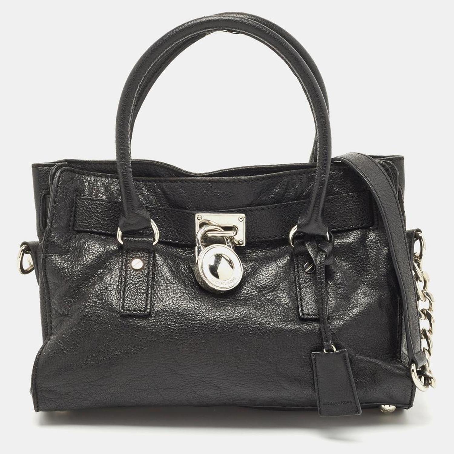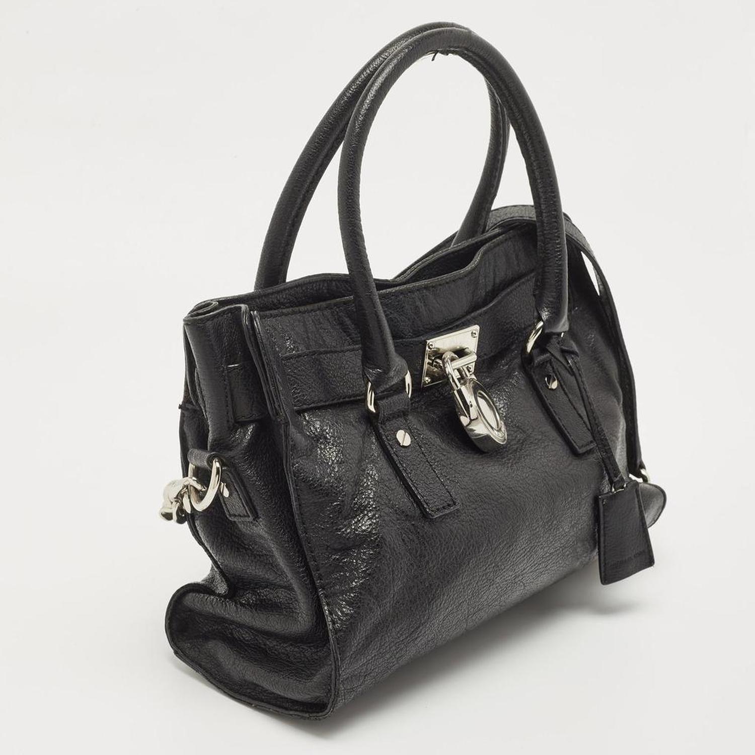 The dual handles and the shoulder strap makes this MICHAEL Michael Kors Hamilton tote ideal for everyday use. Constructed from leather it is adorned with a branded lock on the front and features silver tone hardware. The fabric lined interior is equipped with enough room to house your essentials safely.