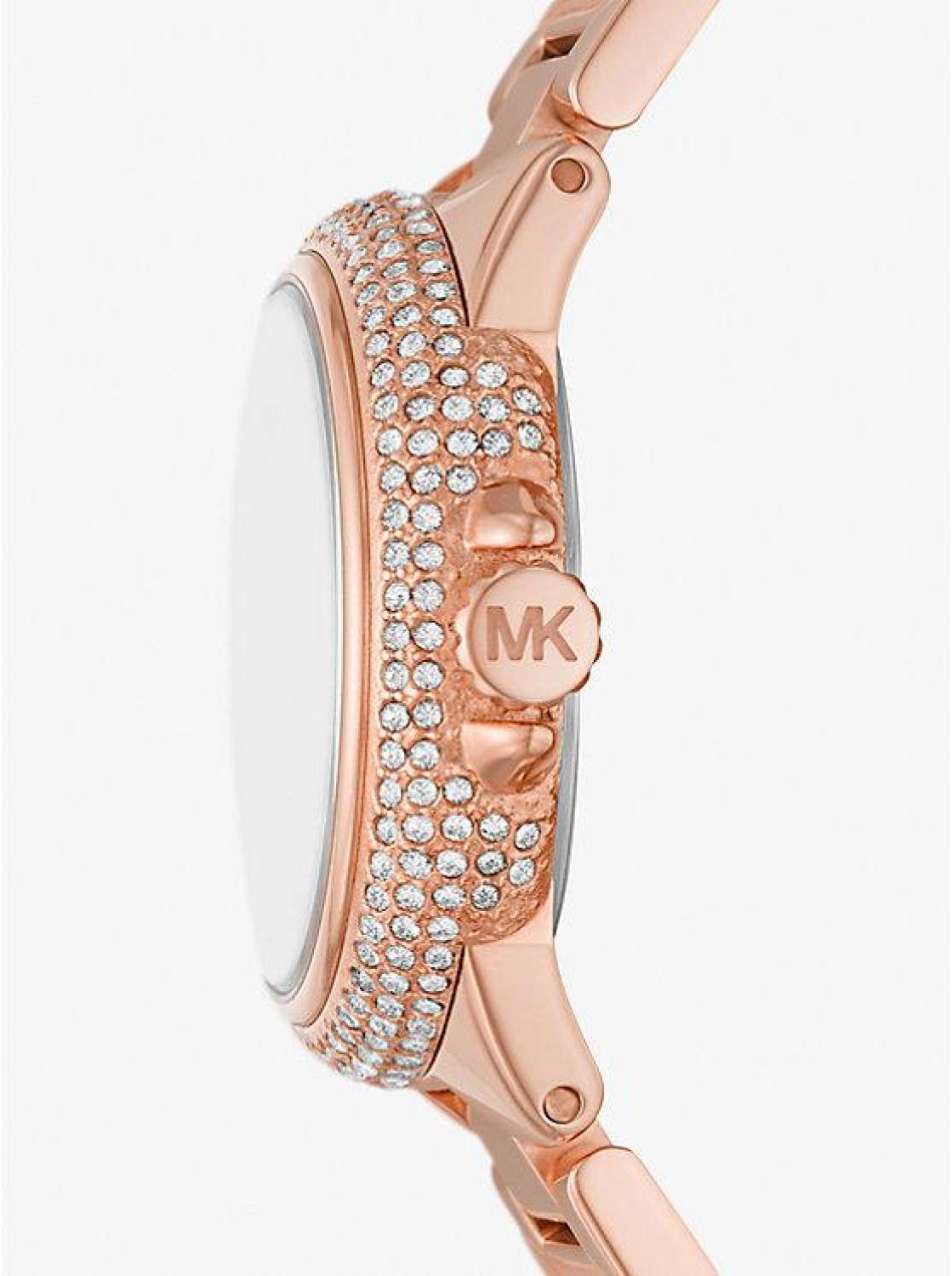 • Reimagined for the season, the Camille watch is back and chicer than ever. This rose-gold stainless steel timepiece is updated with heart-shaped time stops and crowned with pavé accents for a touch of sparkle. The mini size means that you’ll find it comfortable to wear all day.