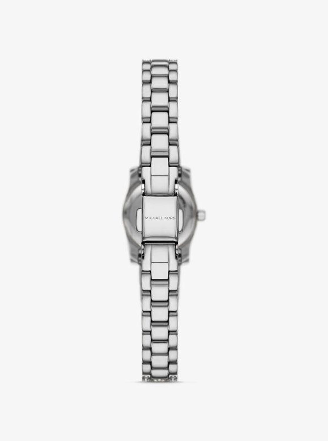 • The Lexington watch exudes opulent glamour with its silver hue and sparkling pavé accents. Made entirely of stainless steel, this mini timepiece boasts a round face with a beveled topring and a matching bracelet strap. Slip it on to give evening outfits a maximum dose of dazzling.