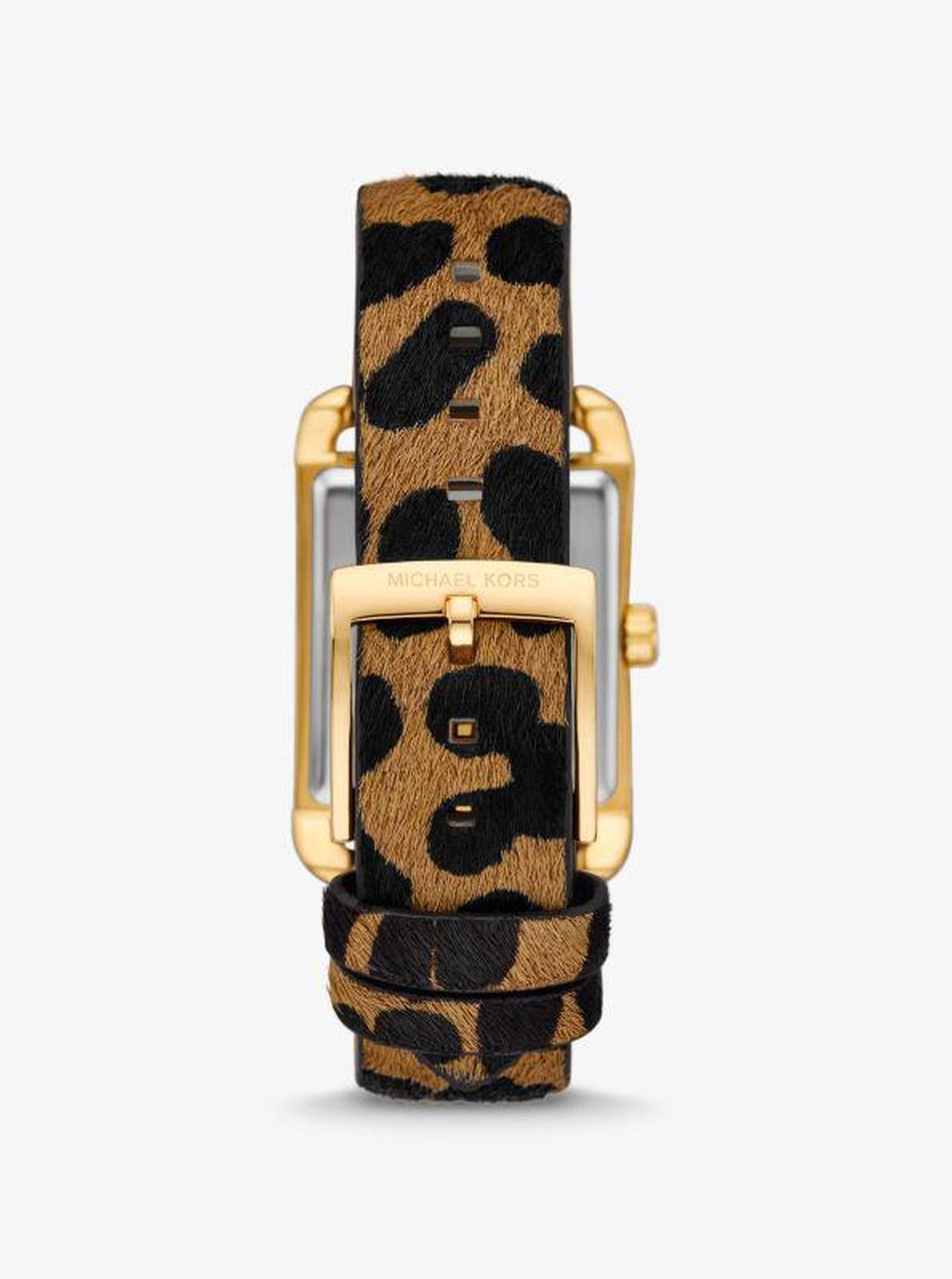 Monroe Gold-Tone and Leopard Print Calf Hair Watch