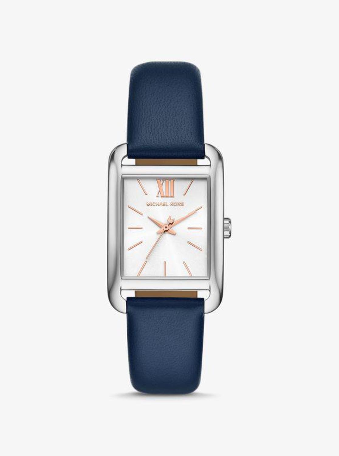 • When it comes to timeless style, it doesn’t get more classic than our Monroe watch. The stainless-steel dial will look great with delicate bracelets and bangles that highlight its petite style, while the navy leather strap is perfect for everyday wear. Create a wrist stack with more silver shades to amplify its luxe feel.