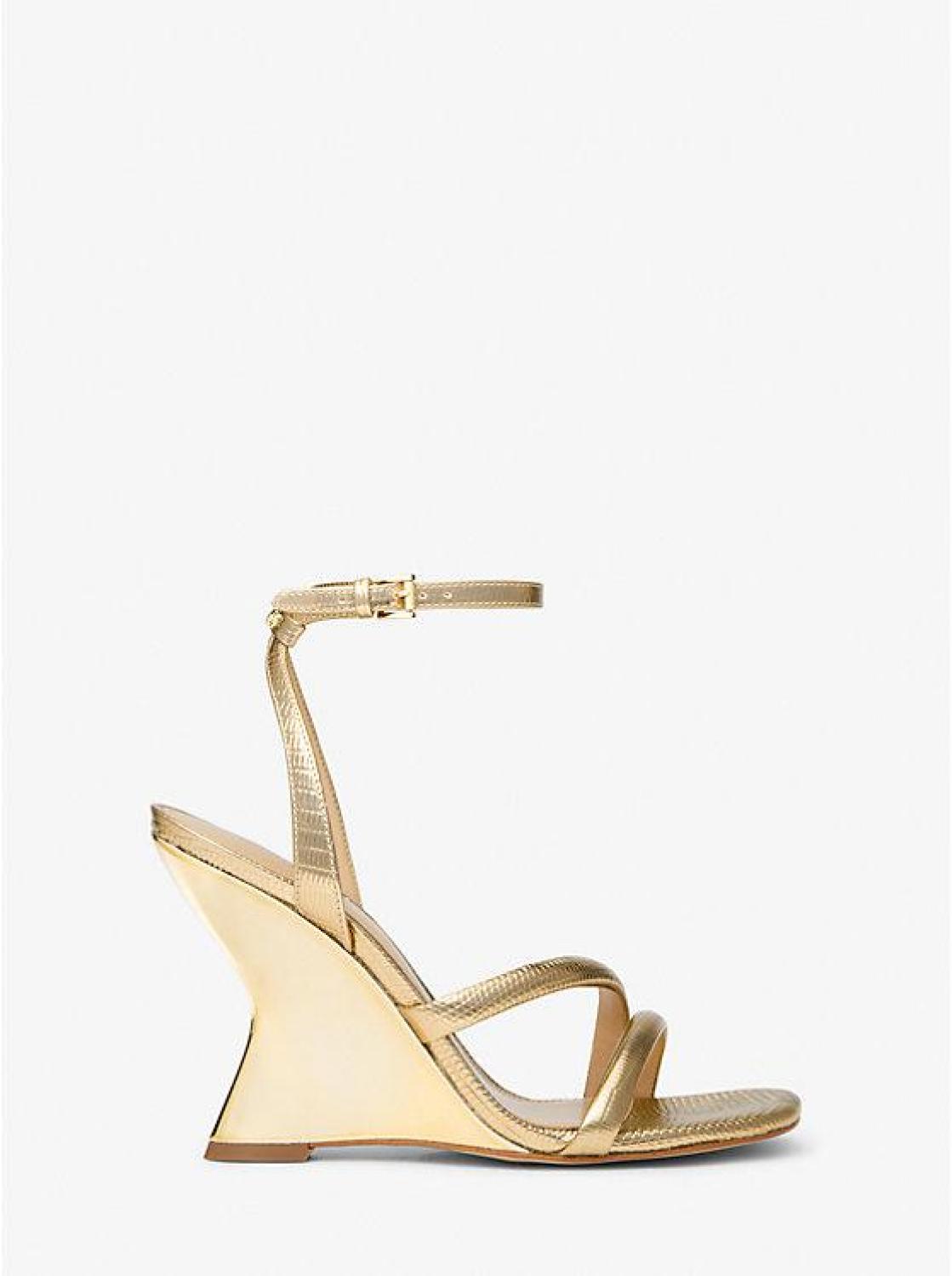 Nadina Metallic Lizard Embossed Leather Wedge Sandal
