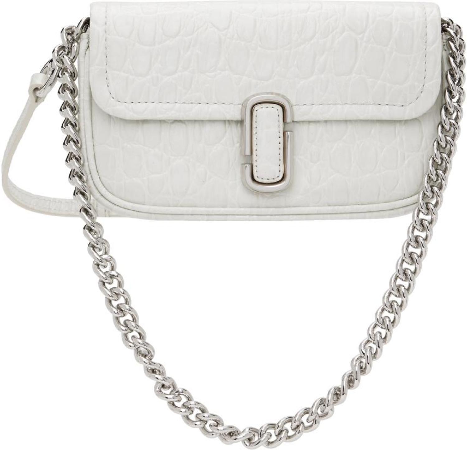 Croc-embossed leather shoulder bag in off-white. Logo hardware at face.