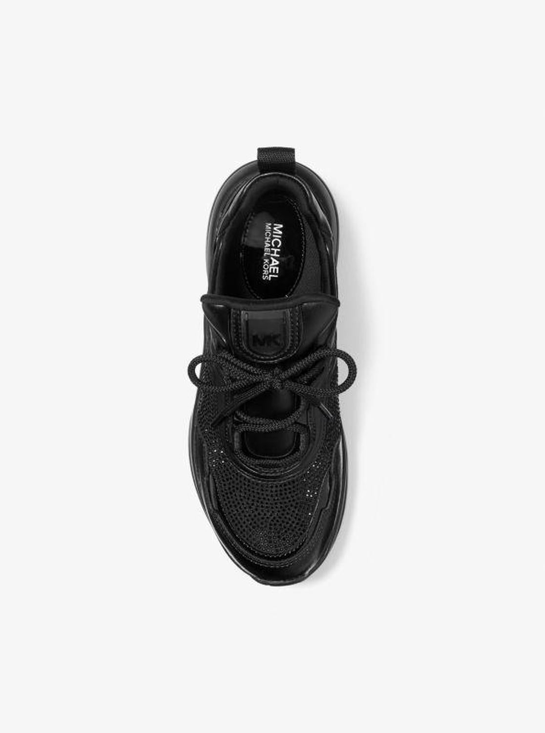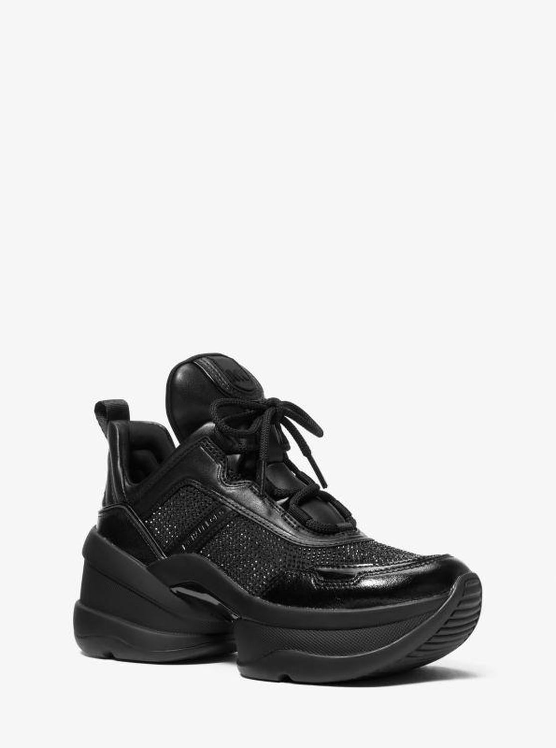 • Meet the trainer that everyone is coveting this season: the Olympia. Accented with crystal embellishments, this fashion-forward style is elevated by an exaggerated outsole. Wear them with a pair of joggers or counter the sporty mood with a printed dress.