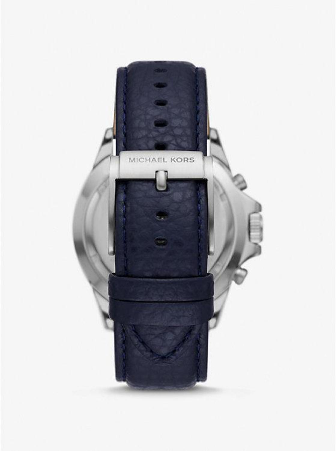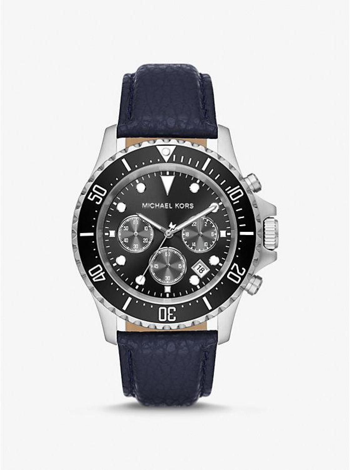 The iconic Everest watch returns, updated with a refined pebbled leather strap. A silver-tone stainless steel case promises to stand up to endless wear and turns to reveal Michael’s signature, while the bold black dial features chronograph details and a date window for added functionality.