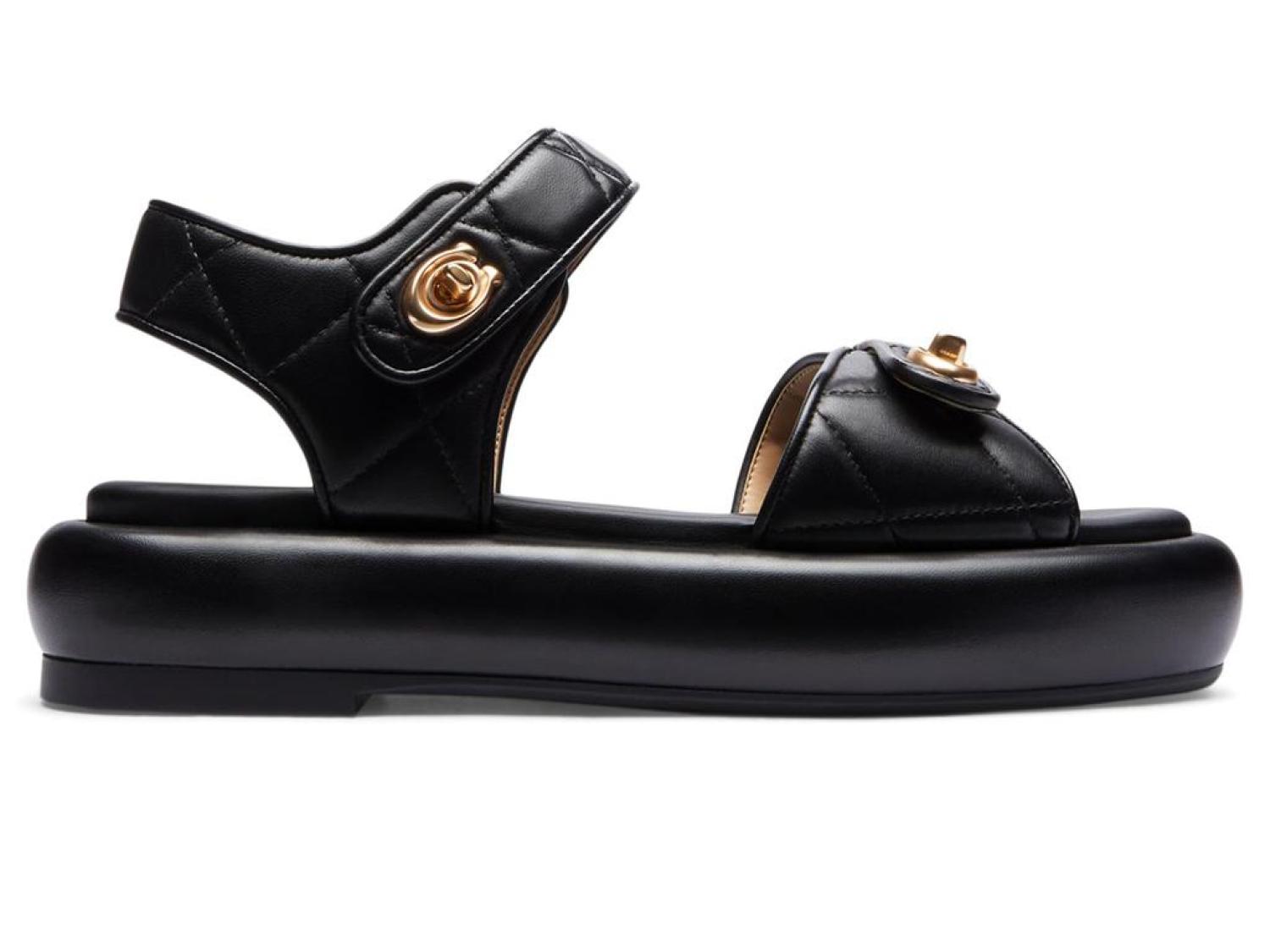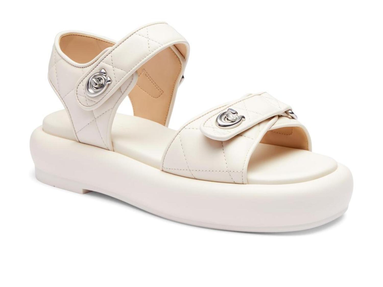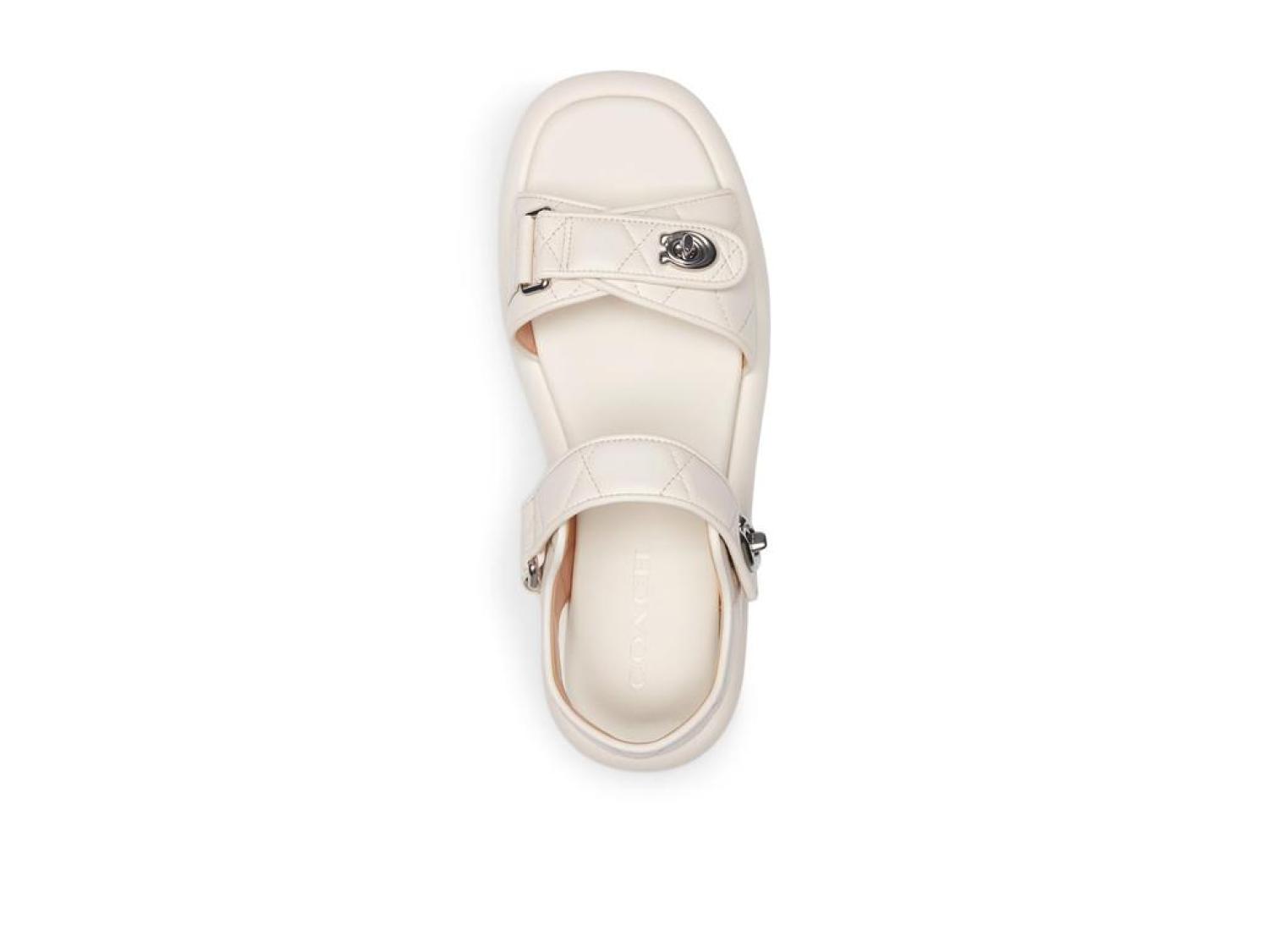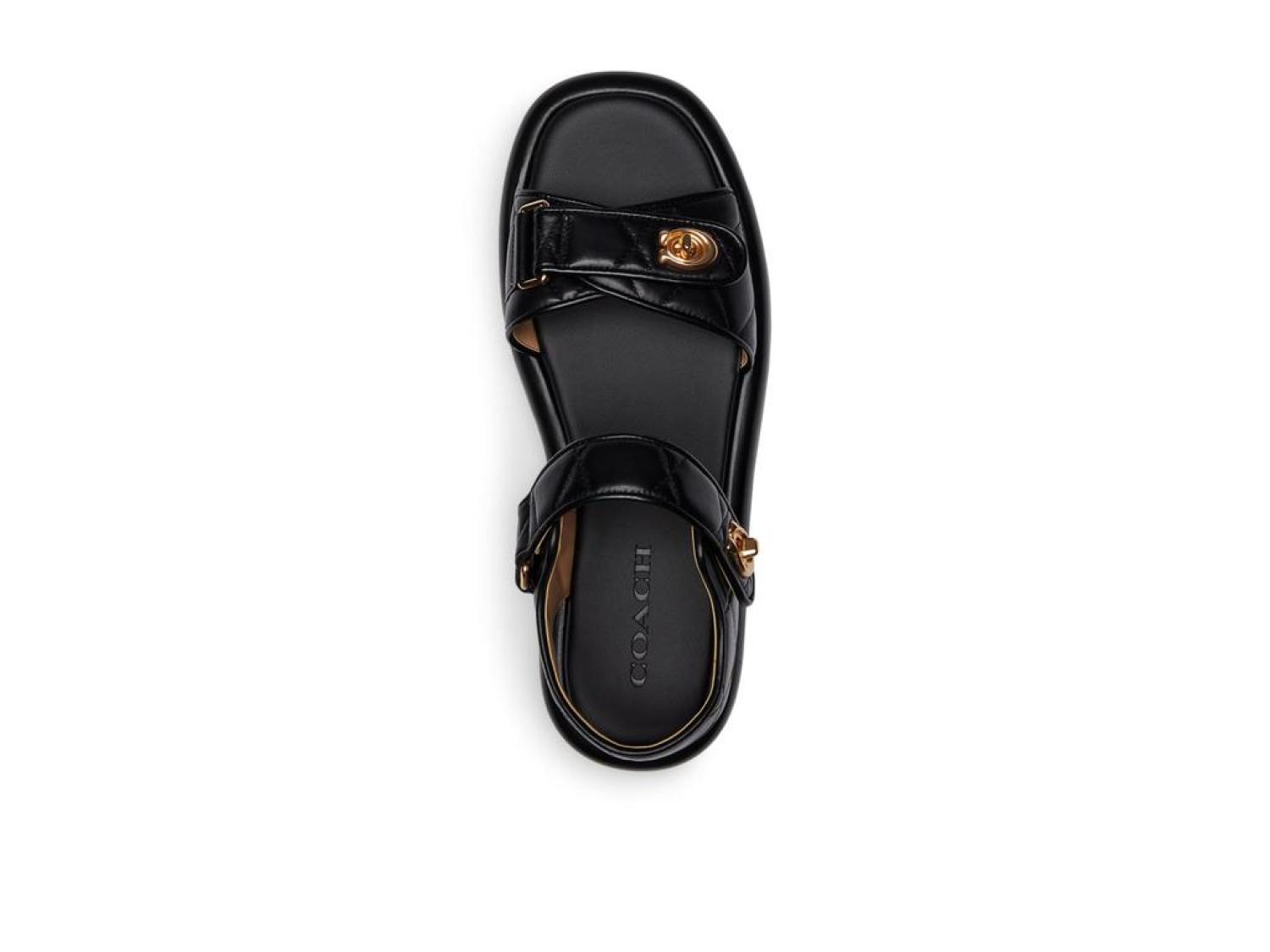 Explore the outside world in new style wearing COACH™ Peyton Sandals. Crafted from leather upper, the footwear has man-made leather lining, and signature jacquard footbed. It has a turnlock closure, platform heel, and slide-on style making it ideal for outdoors.