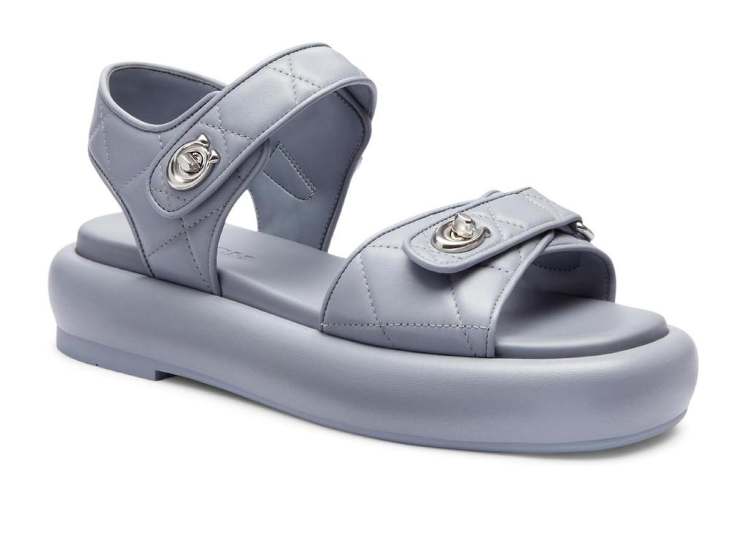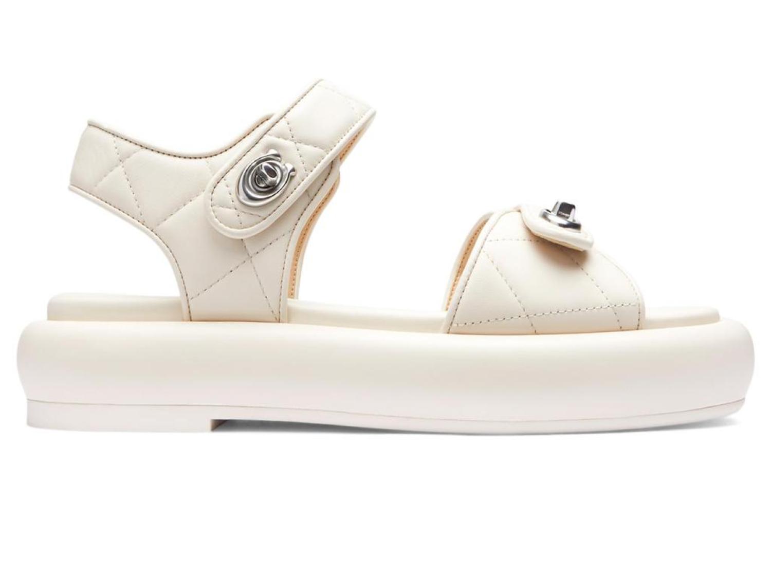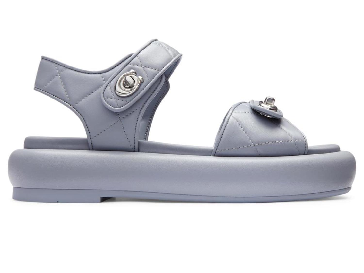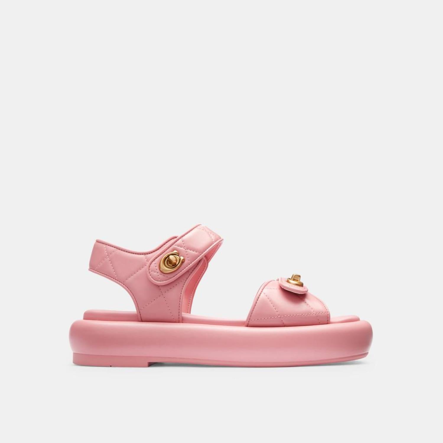 Explore the outside world in new style wearing COACH™ Peyton Sandals. Crafted from leather upper, the footwear has man-made leather lining, and signature jacquard footbed. It has a turnlock closure, platform heel, and slide-on style making it ideal for outdoors.