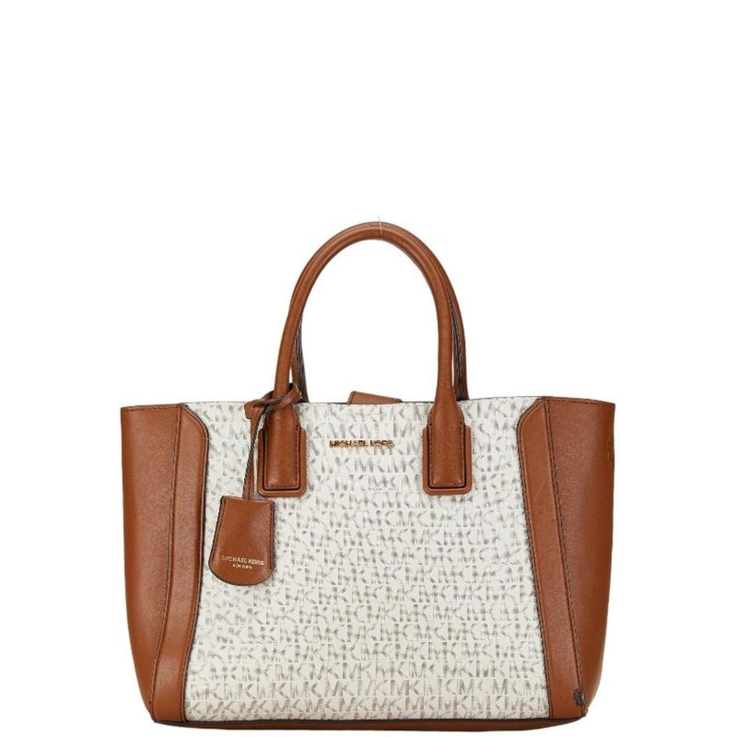 Brand - Michael Kors, Color - Brown, White, Material - PVC, Leather, Dimensions - 23.5cm x 30cm x 8cm / 9.25'' x 11.81'' x 3.14'', Condition - Rank AB. Rank AB Used - Traces of usage, scratches / dirt can be seen but generally in good condition. Before purchasing, please refer to the images for the exact condition of the item. Before purchasing, please refer to the images of the accessories included with the item. Damage Ranking - Slight Size - One Size