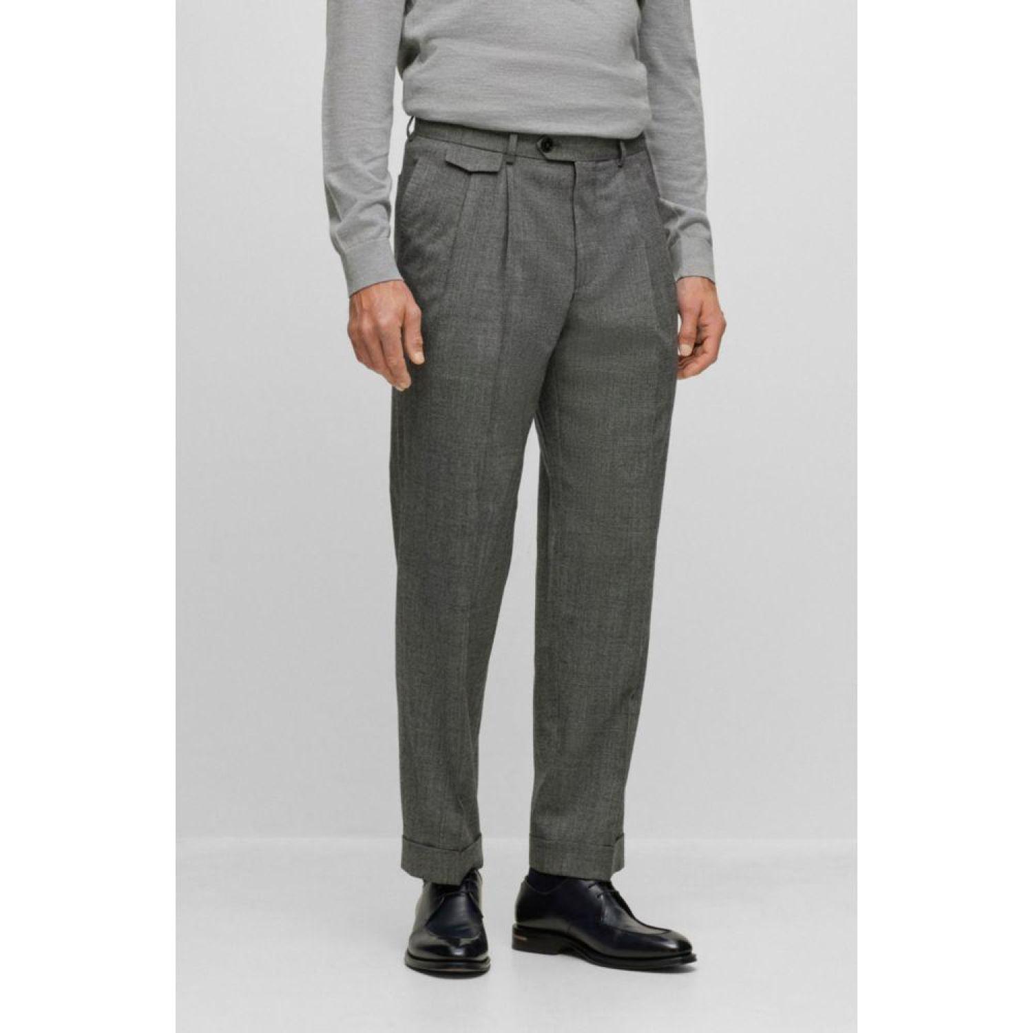 Formal trousers by BOSS Menswear, cut to a relaxed fit in stretch wool patterned with a modern check.
