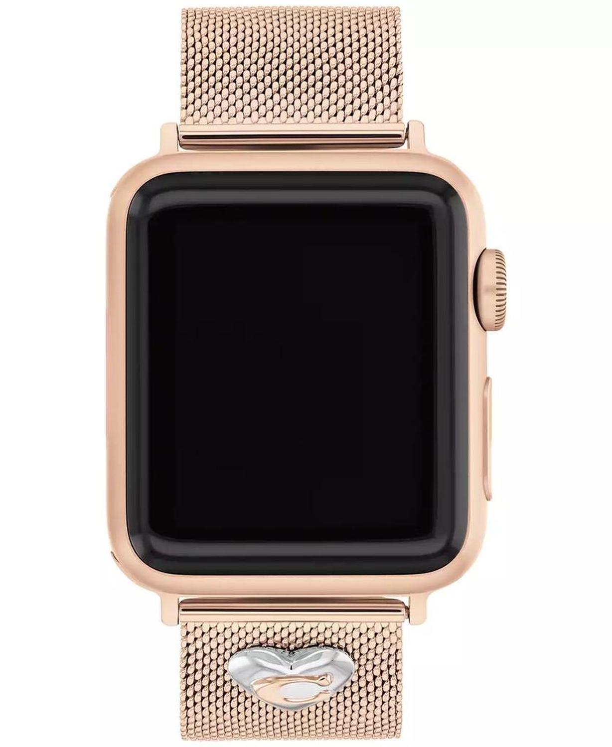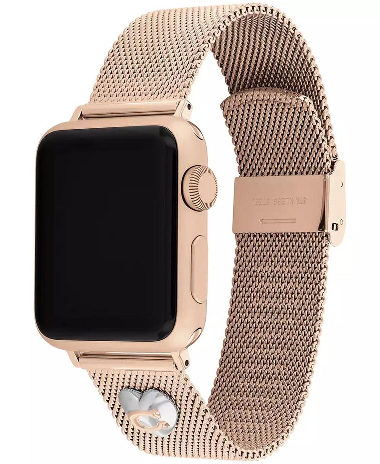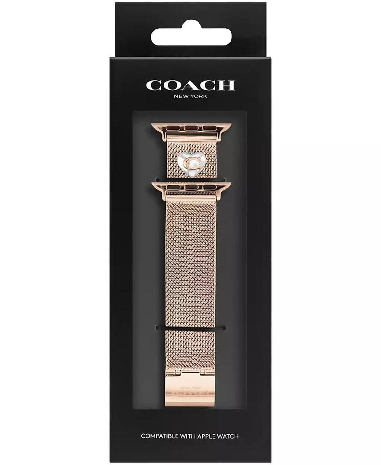 • Made exclusively for use with the 38mm, 40mm and 41mm Apple Watch, this sleek rose gold-tone mesh bracelet features a stainless steel heart charm detailed with the COACH signature. SKU# 14700240.