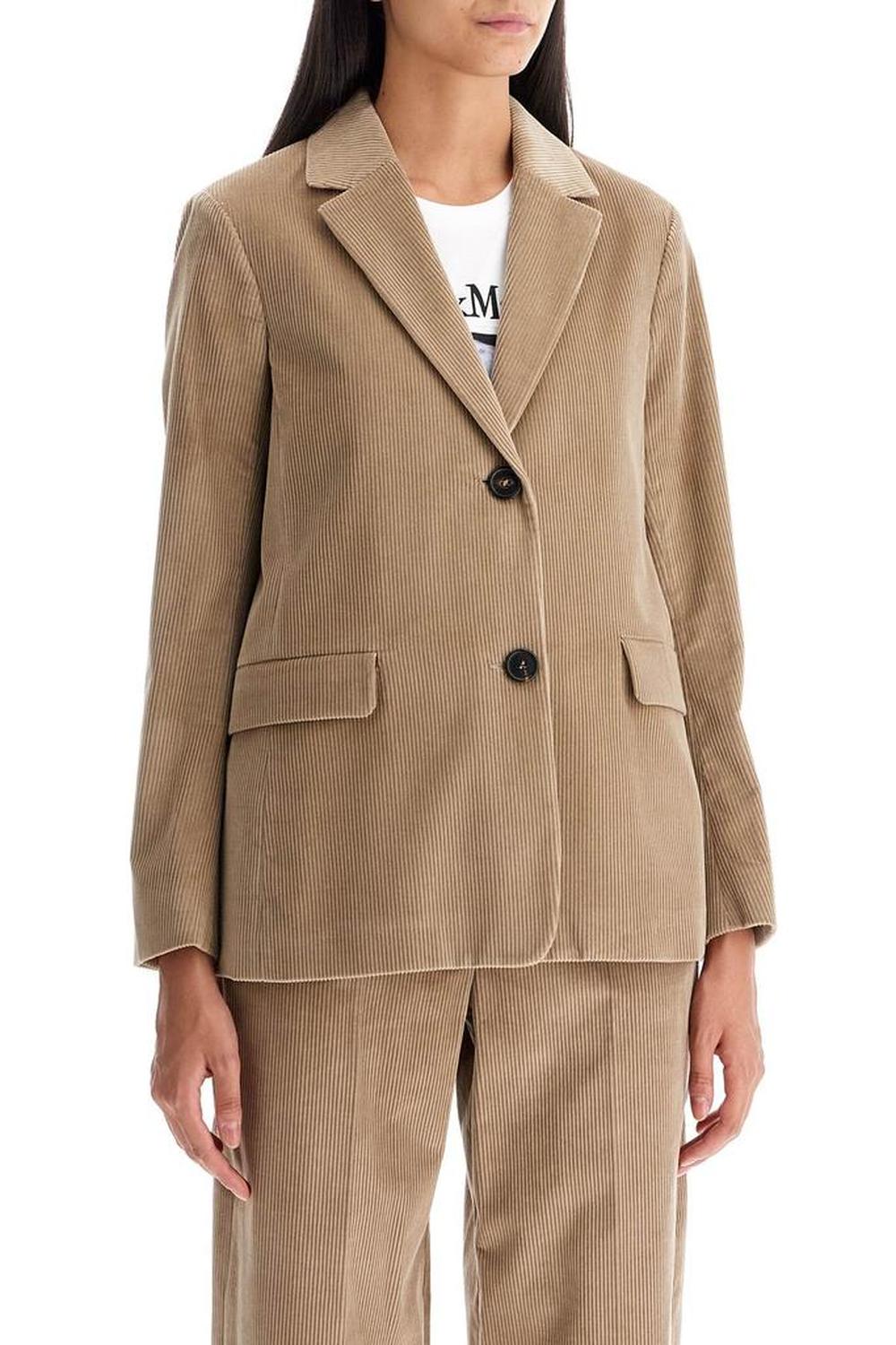 S Max Mara single-breasted jacket made of soft five hundred lines velvet in pure cotton with a regular fit. Notched lapel, flap pockets on the front, back vent. Lined. The model is 177 cm tall and wears size IT 38.