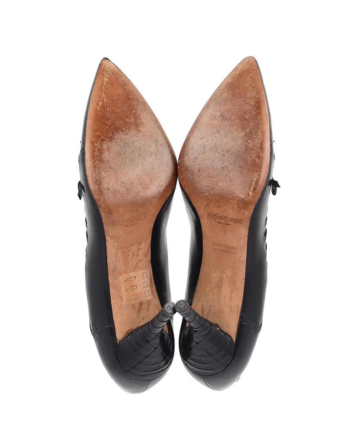 Saint Laurent Court Shoe Pumps with Overstitch in Black Leather