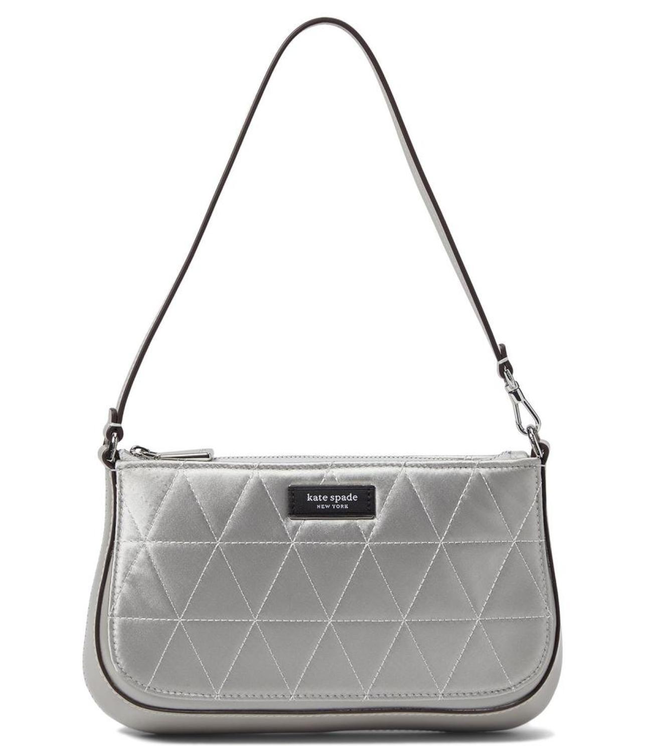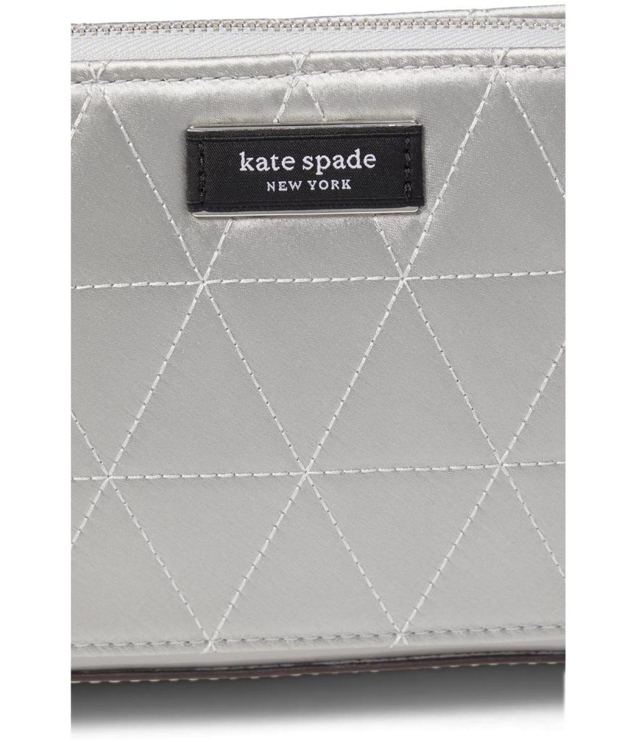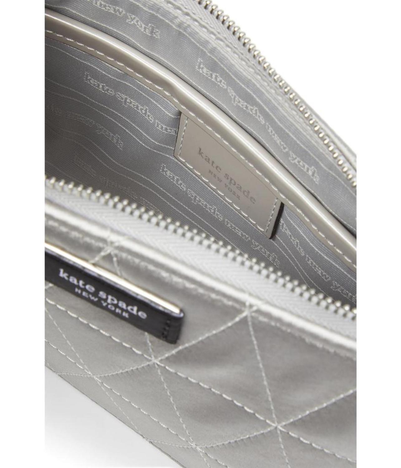 Travel to work keeping your gadgets and wallet safe inside Kate Spade New York® Sam Icon Quilted Satin Mini Pouchette. The bag features a zippered compartment and a removable adjustable crossbody strap to easily carry the weight.