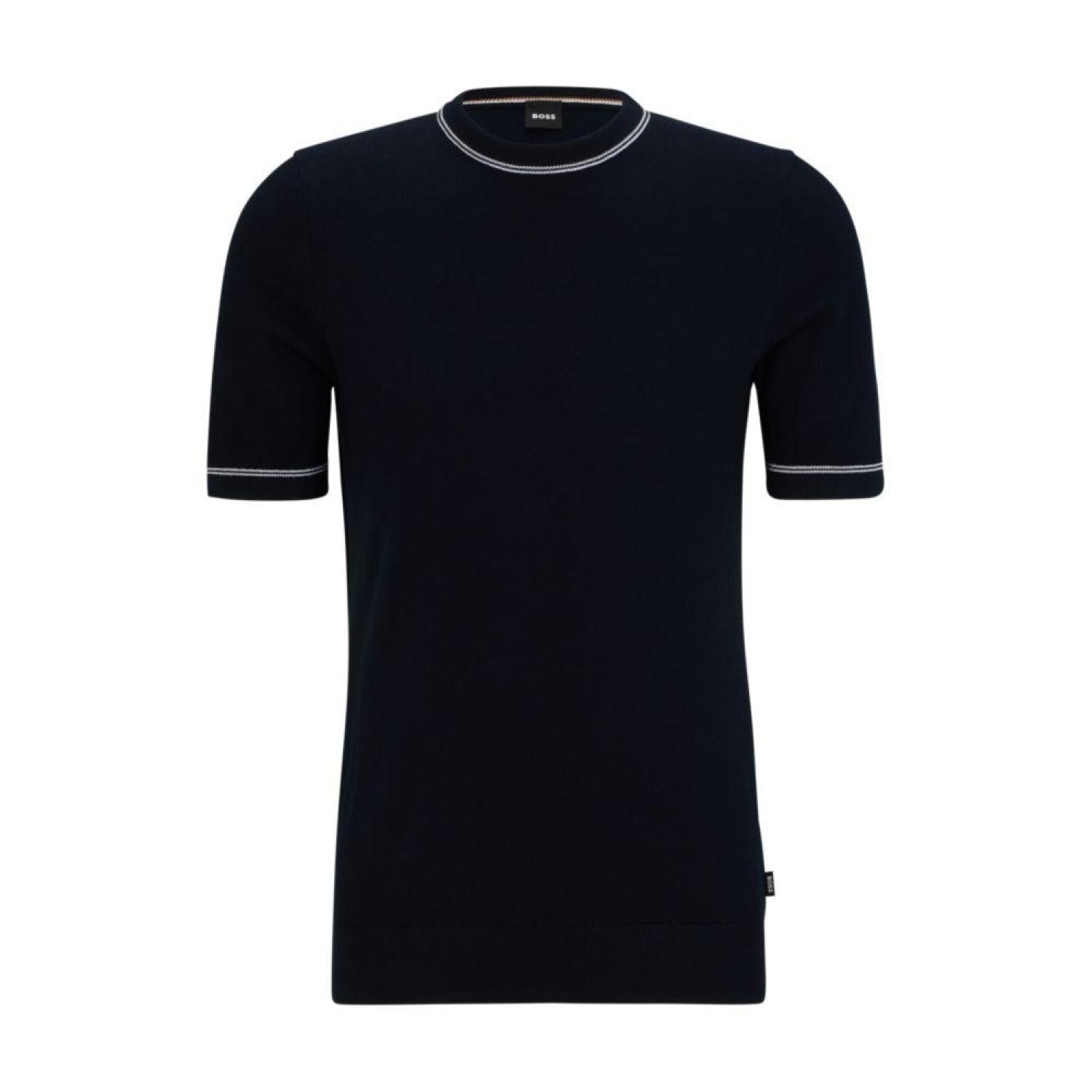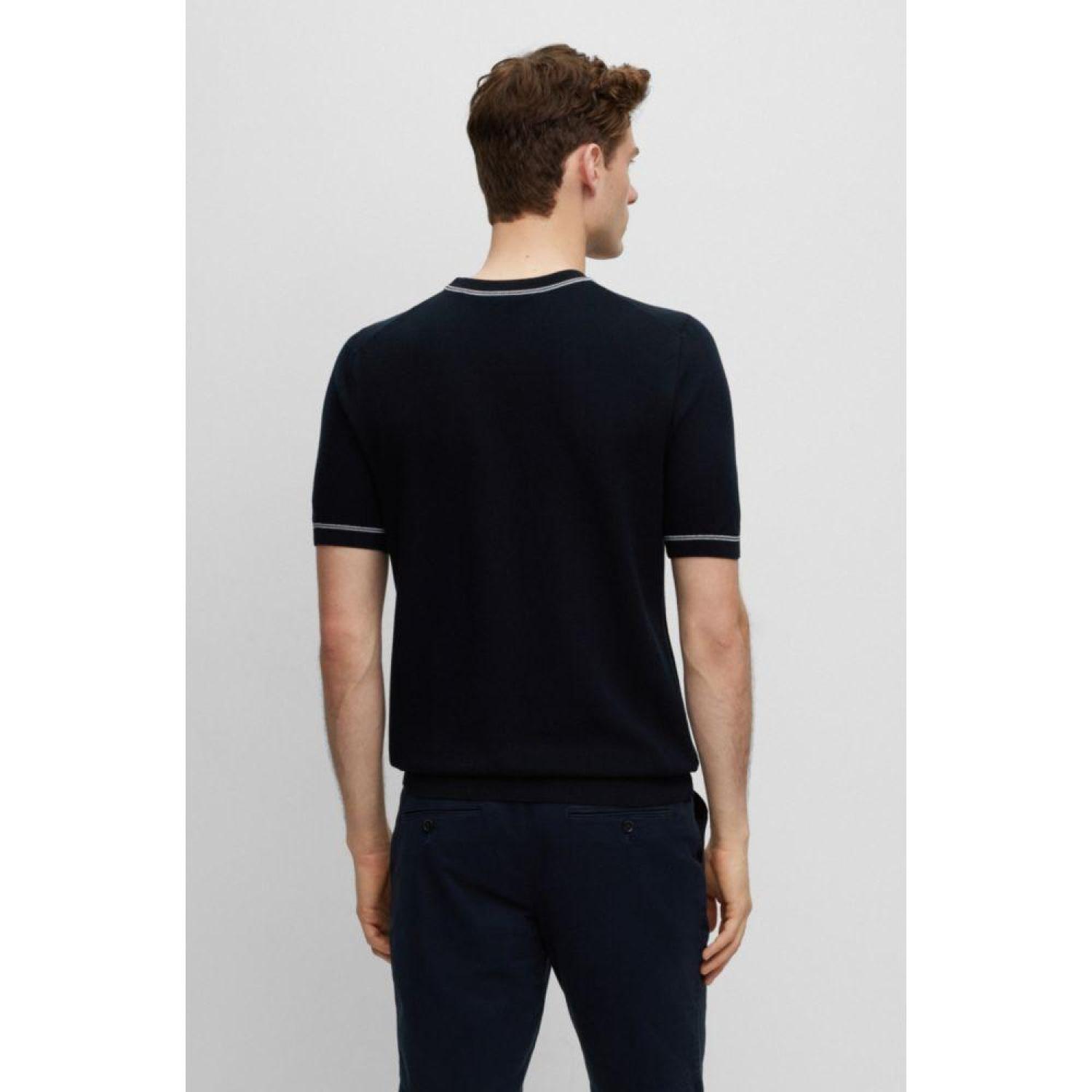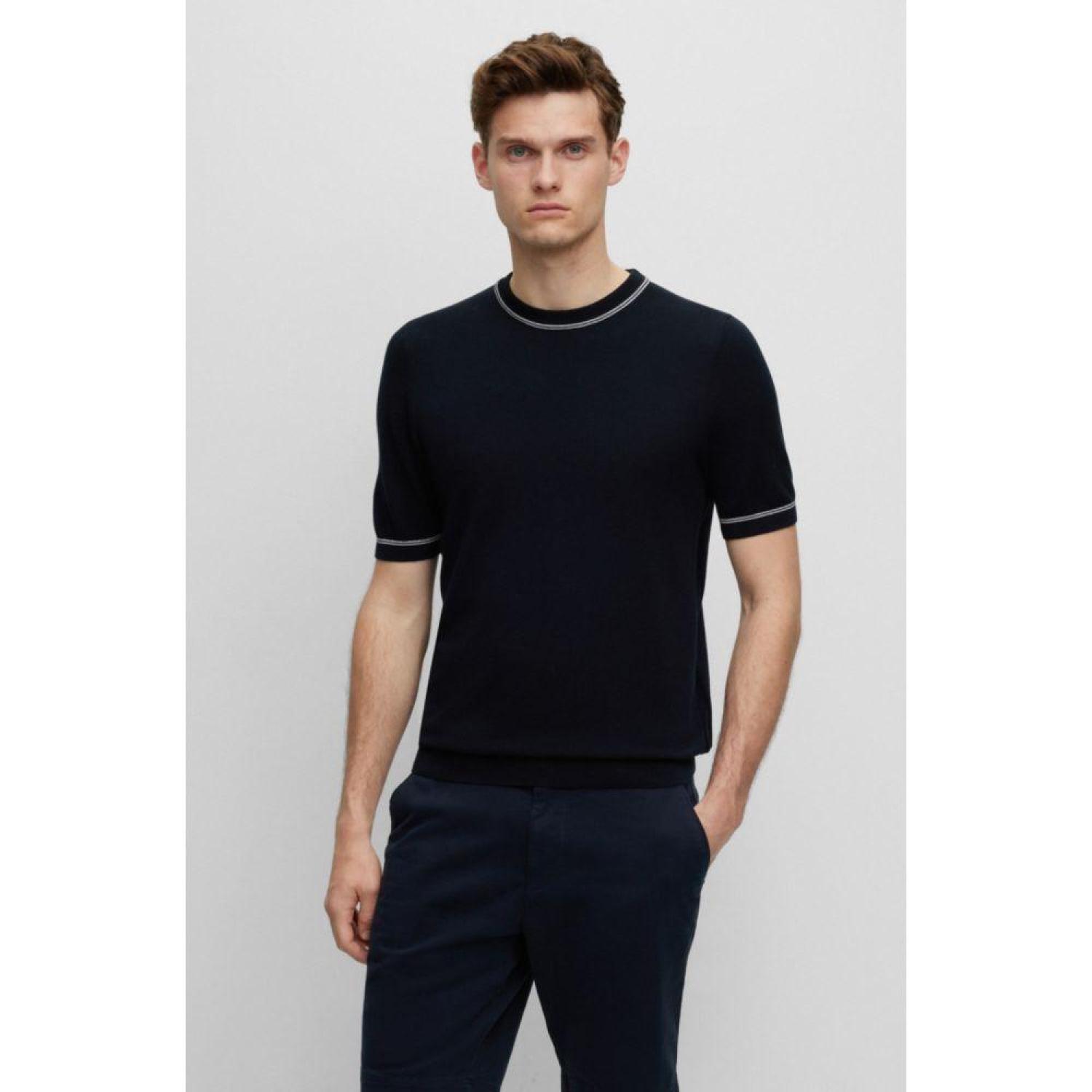 • A regular-fit short-sleeved sweater in piqu-knit fabric blended with cotton by BOSS Menswear, detailed with fineline accents.