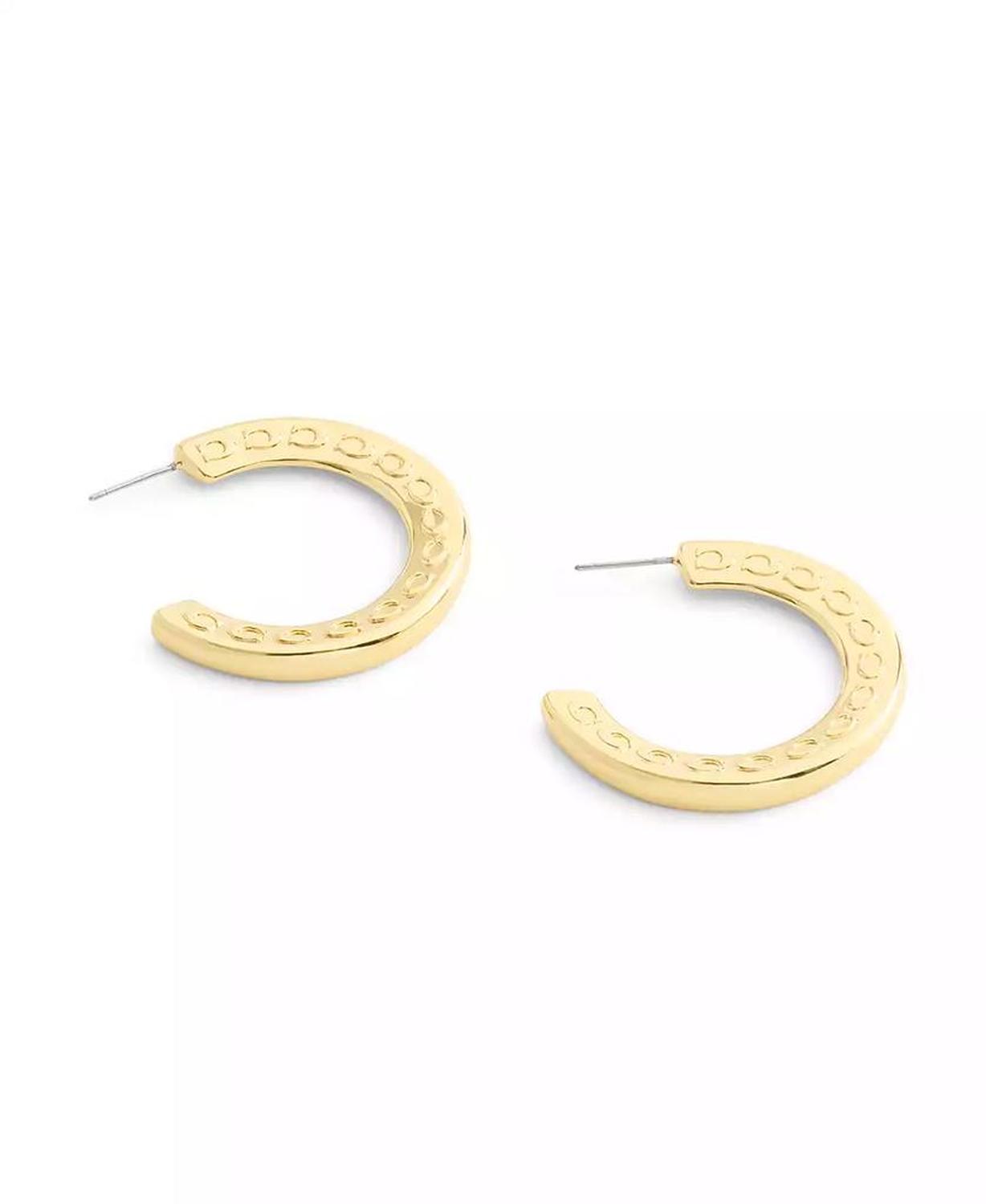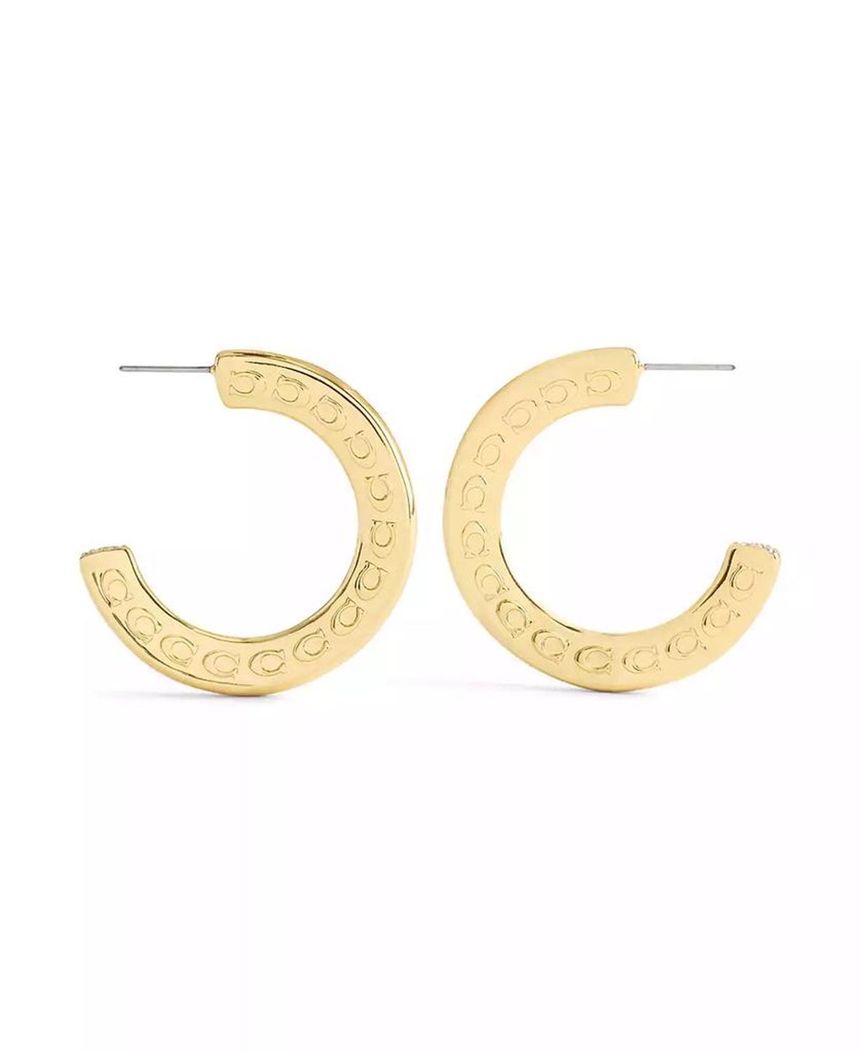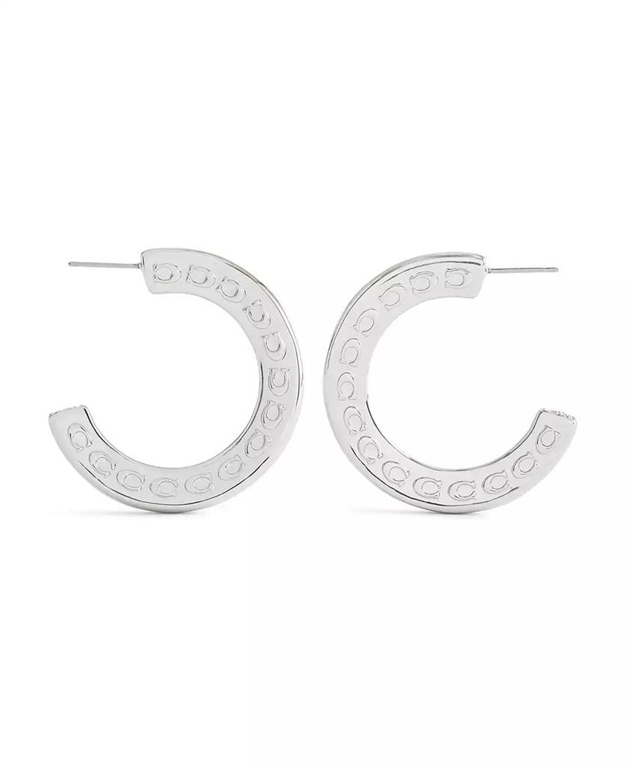 Minimal hoop earrings featuring an open silhouette and signature sculpted C motif. Posts are made from hypoallergenic titanium posts perfect for everyday. Set in polished rhodium and gold-tone finish brass Approx. drop: 1-1/4" Approx. width: 1/4" Approx. hoop diameter: 1" Post back closure Imported