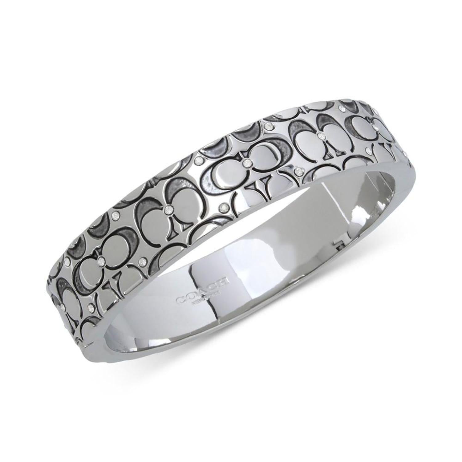 Engraved quilted C's are accented with crystals on this signature bangle bracelet from COACH.