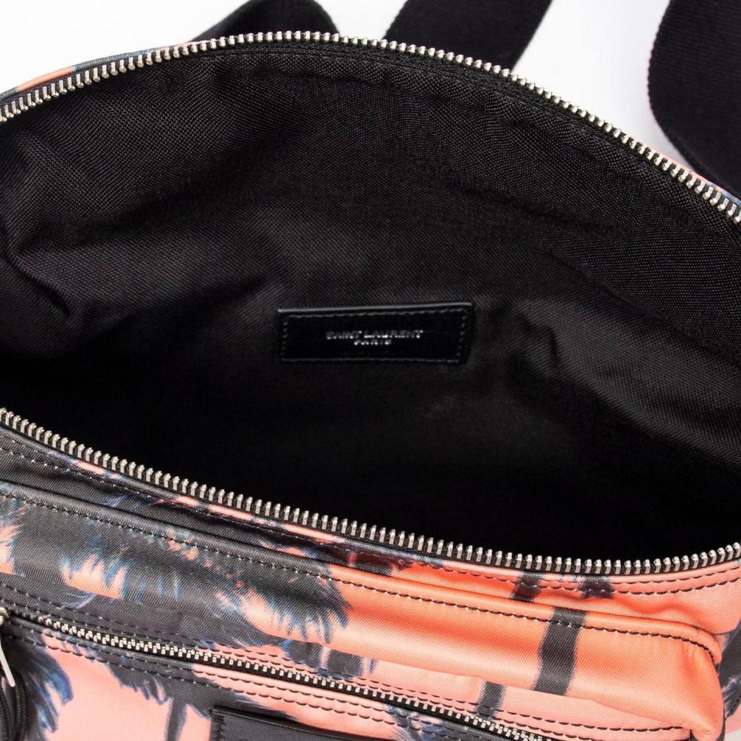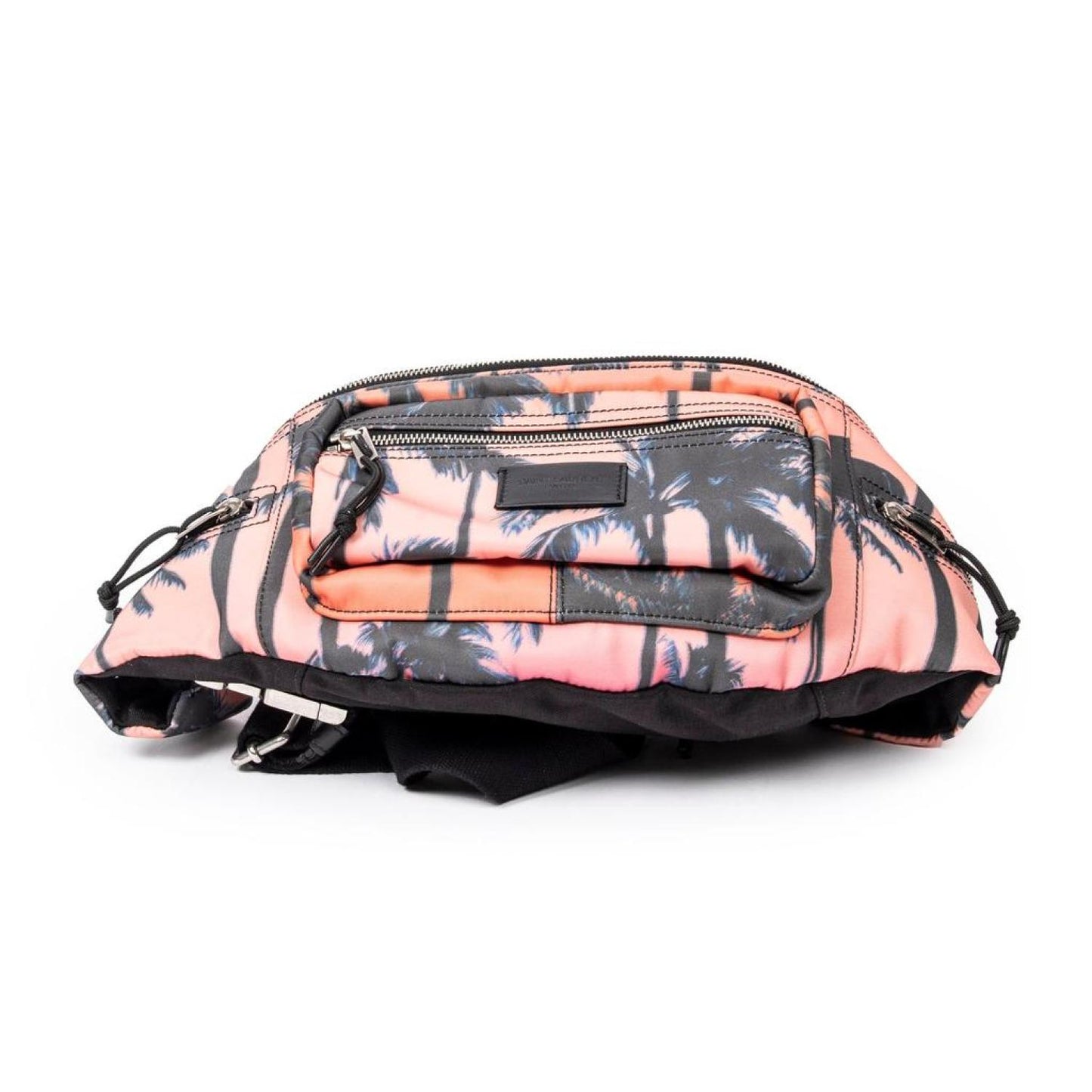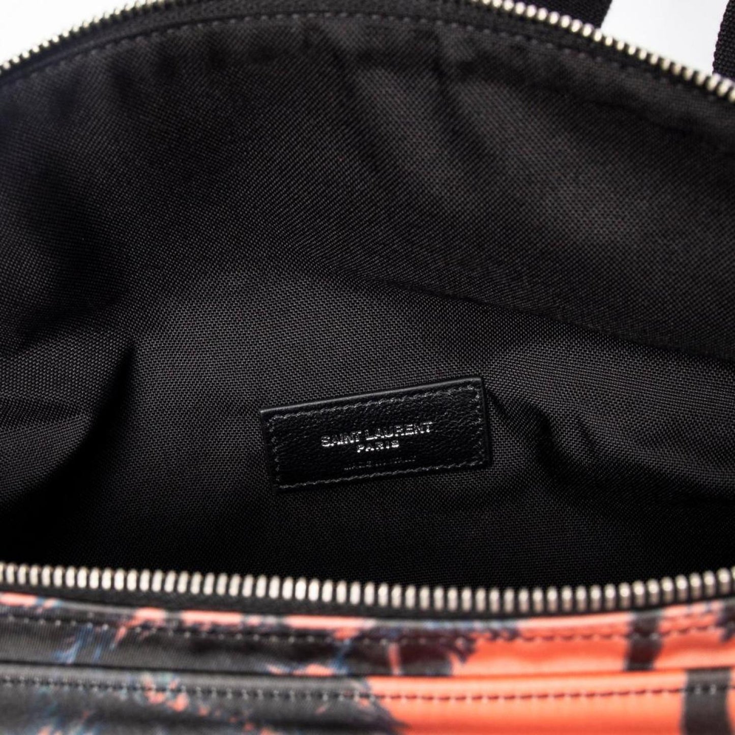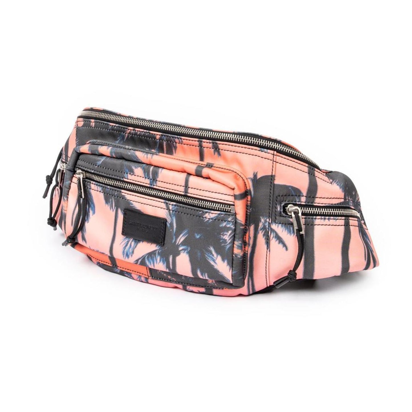 Yves Saint Laurent Shoulder Bag in Pink/Orange/Black Palm Tree Print Nylon Canvas and Silver hardware. Dimensions - 25*14*9cm. Serial number - GAB-581375-1119. Inclusions - None.