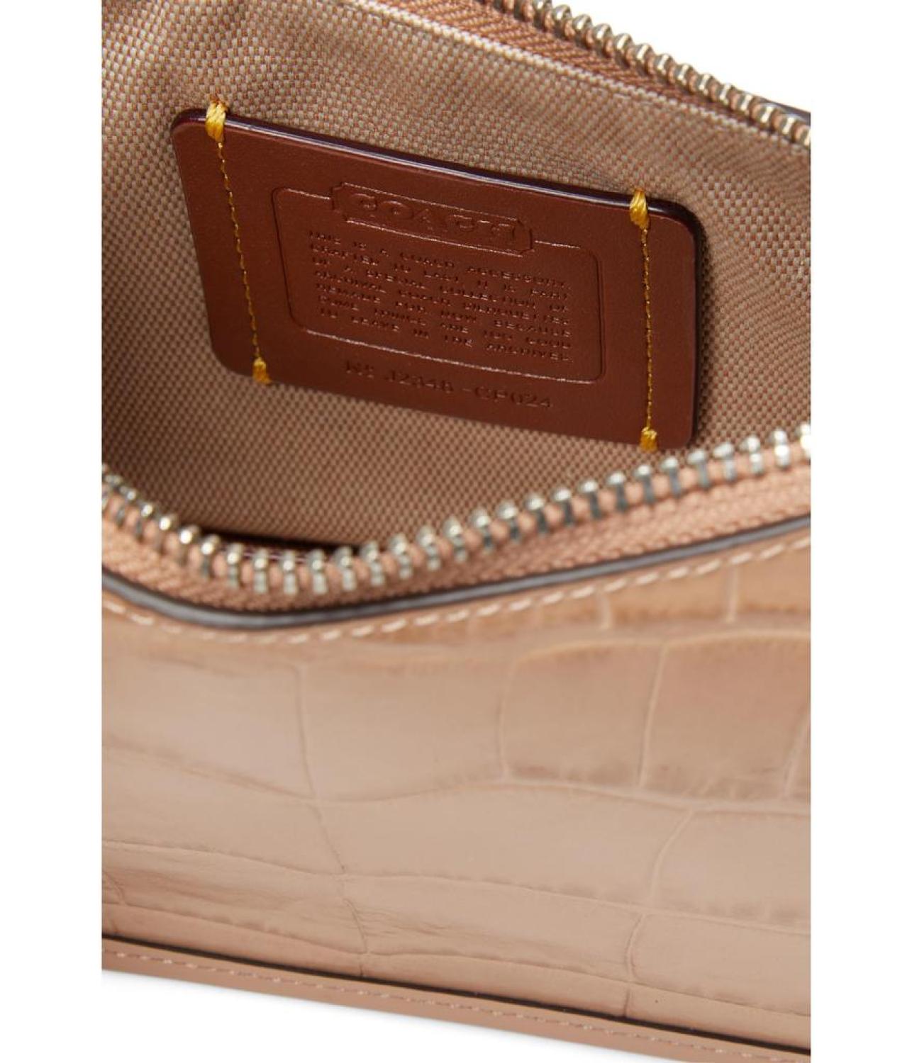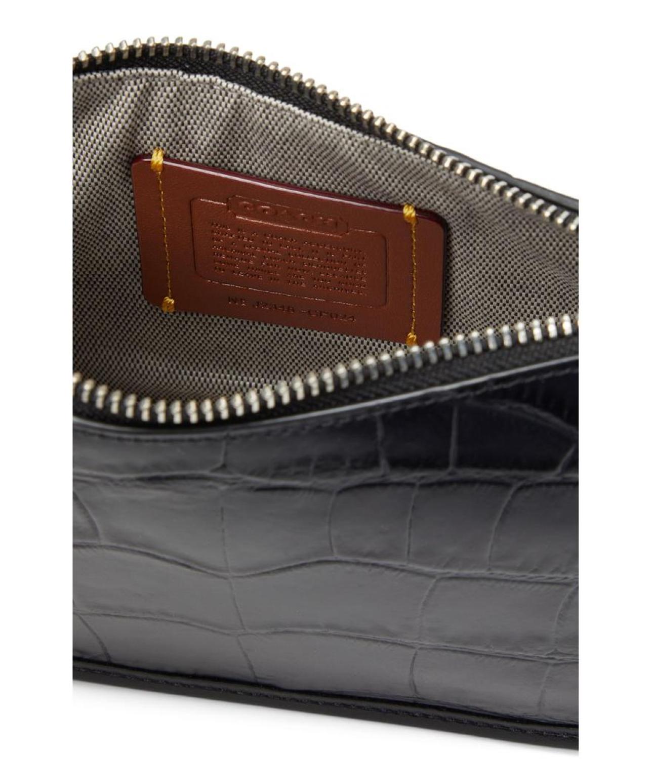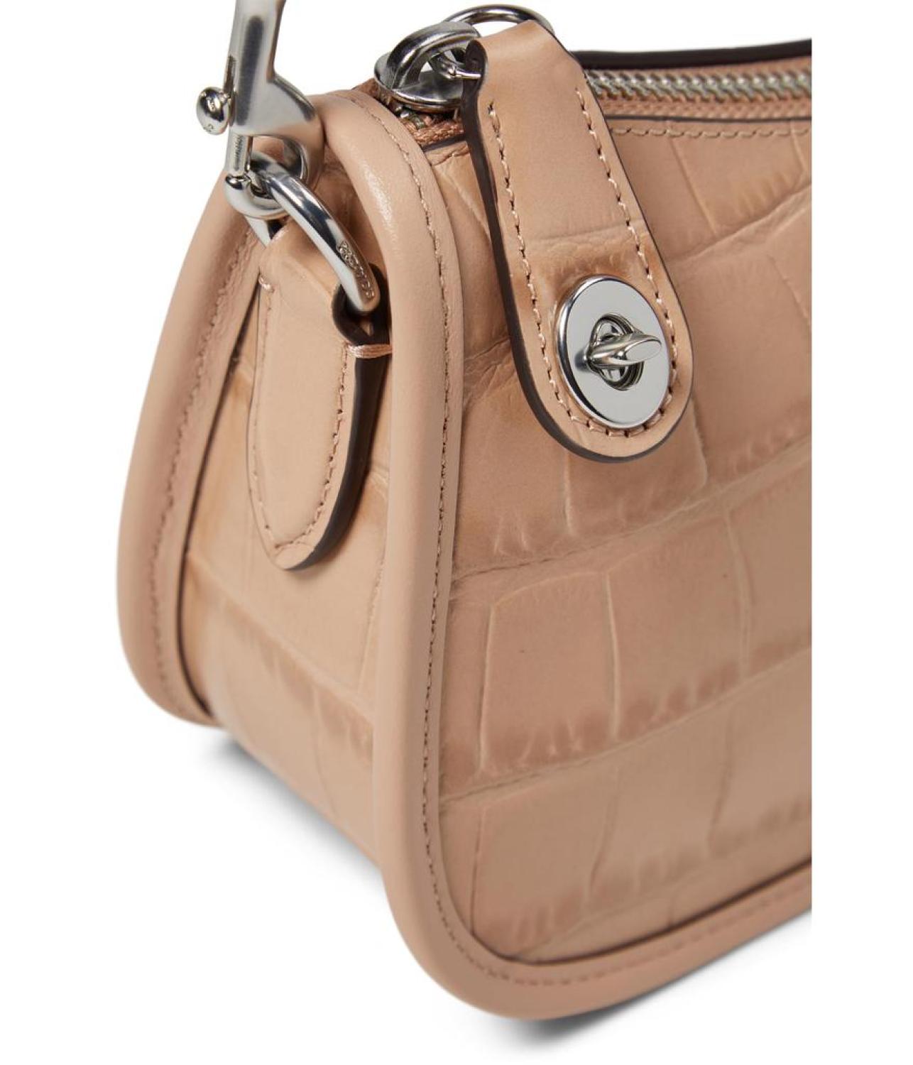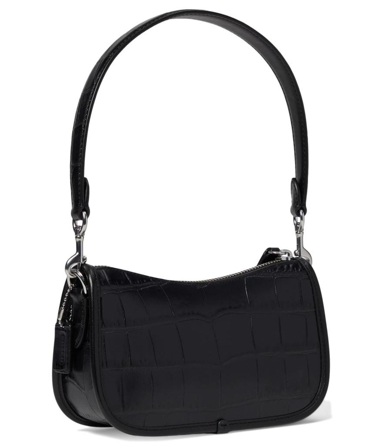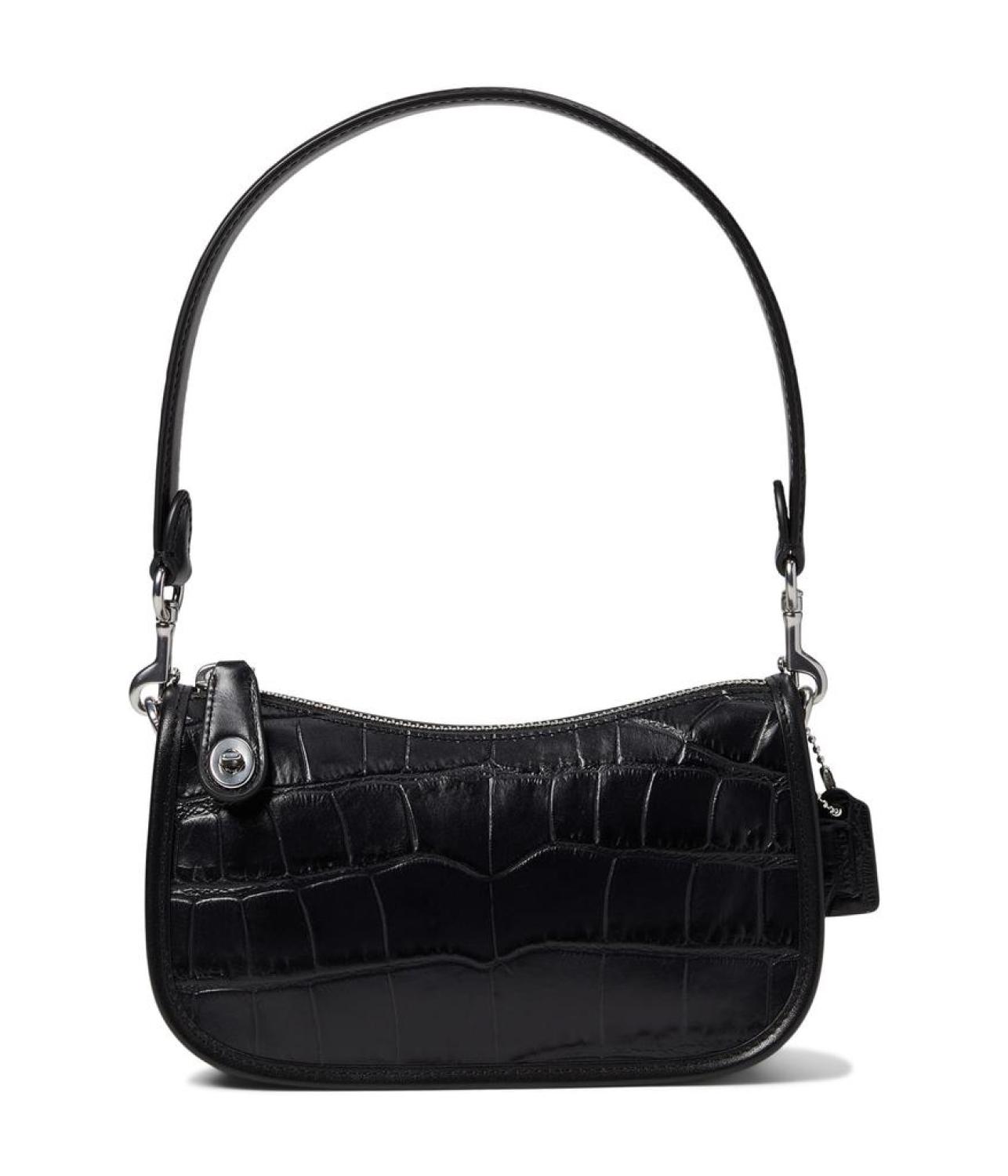 Please Note: COACH™ items cannot be shipped to military addresses (APO or FPO) and addresses in Hawaii, the Virgin Islands, Guam or any other locations outside of the continental US. Add a touch of glam to your look with COACH™ Swinger 20. Crafted from Crocodile-embossed leather and refined calf leather, this bag features zippered closure, detachable carry handle with drop, and three credit card slots. Fabric lining. Imported. Measurements: Bottom Width: 2 1/2 in Depth: 7 3/4 in Height: 4 3/4 in Accessory Strap Drop: 7 3/4 in