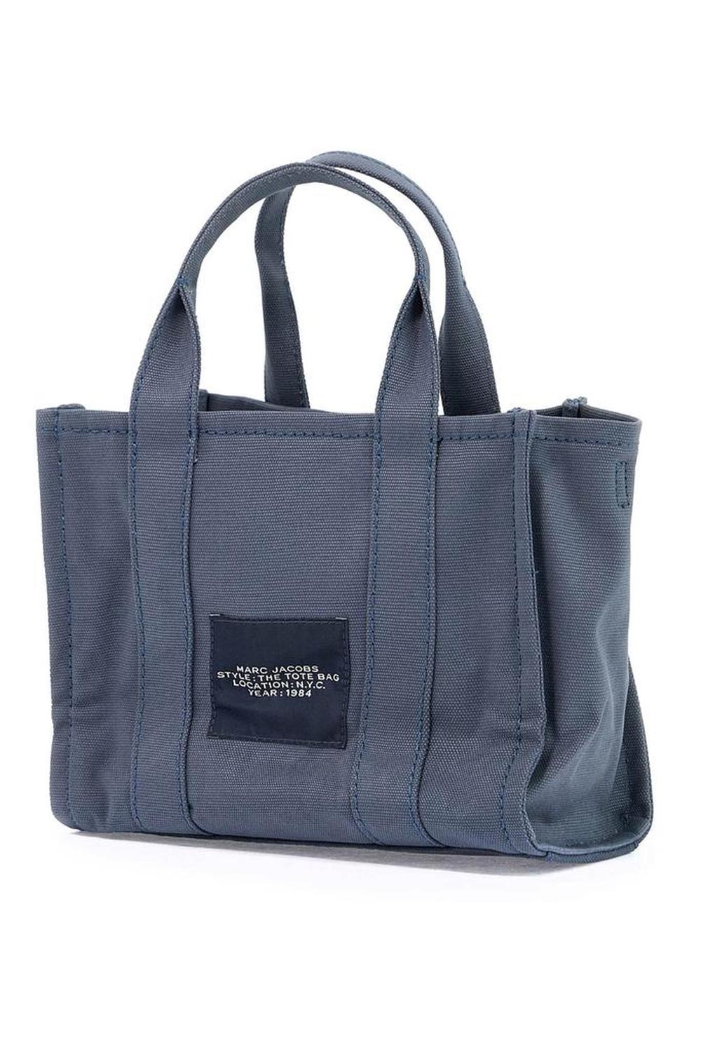 • The Small Tote bag by Marc Jacobs in cotton canvas, featuring contrasting, adjustable, and removable webbing strap, contrasting front logo print, back logo patch, zip closure, side handle. Unlined interior. SIlver-finished metalware.