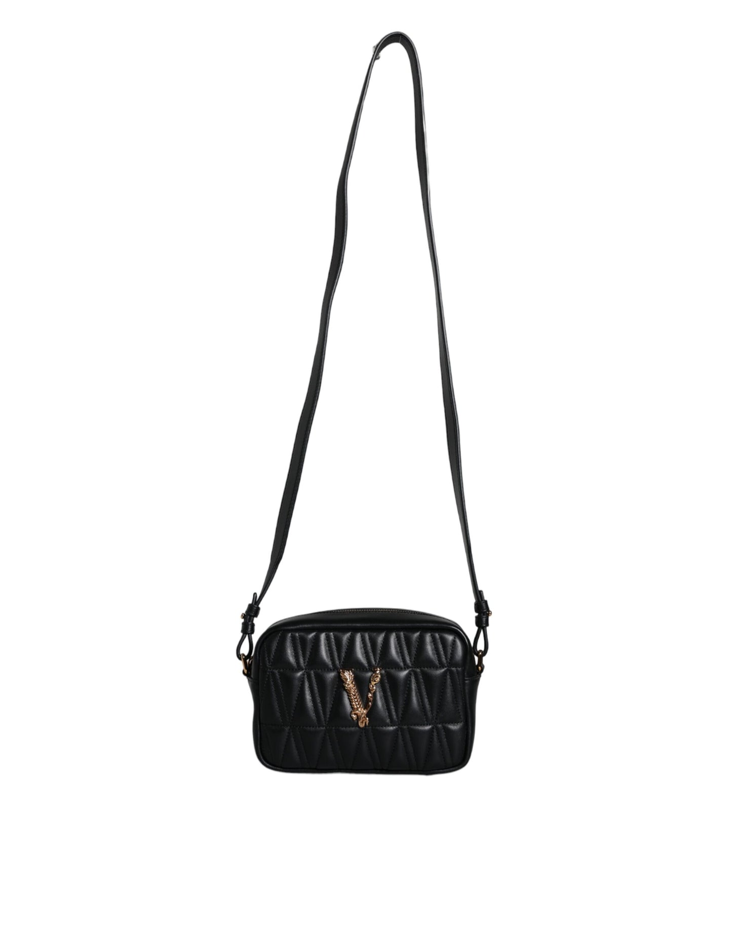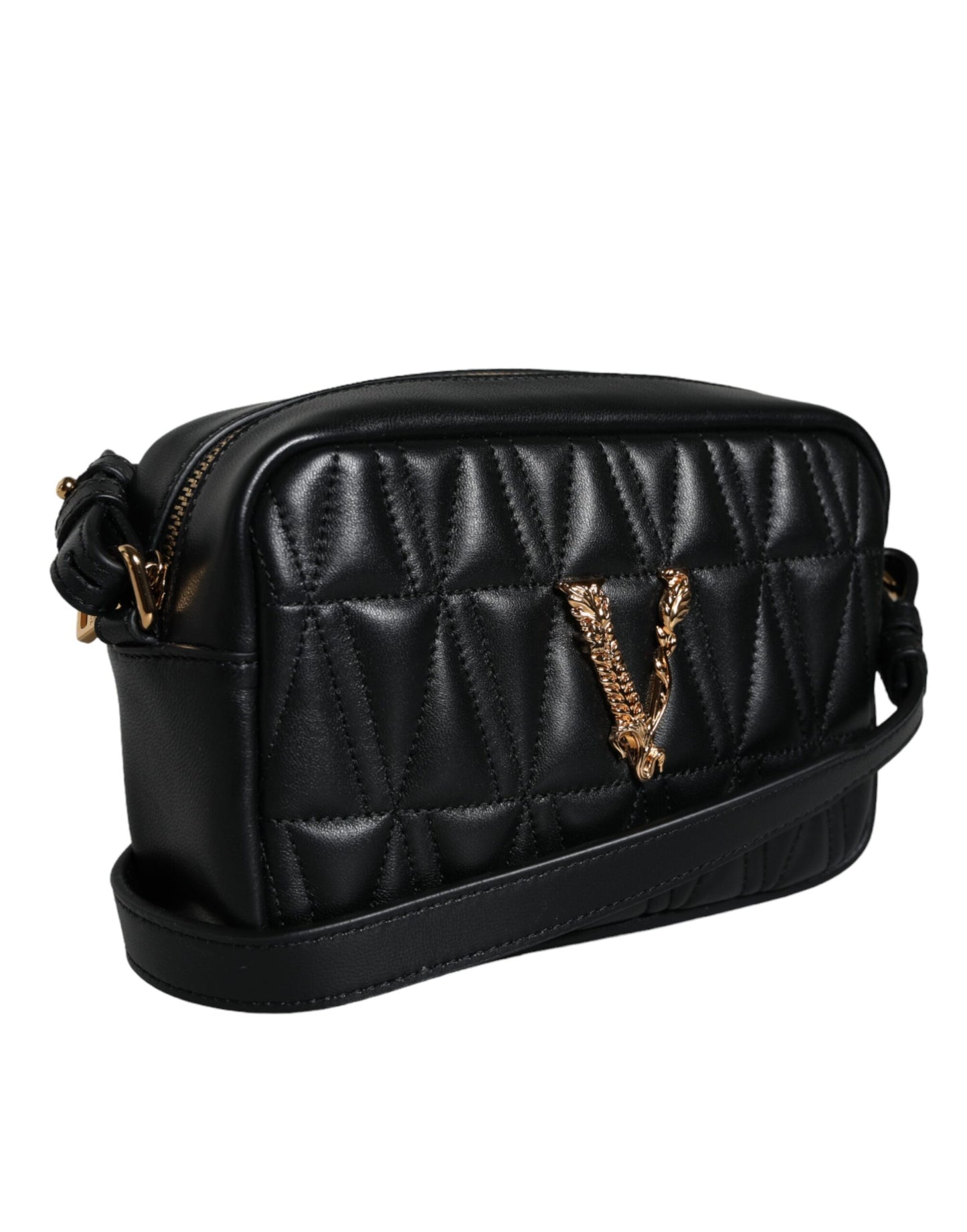 Versace Black Quilted Lamb Leather Camera Case Shoulder Bag