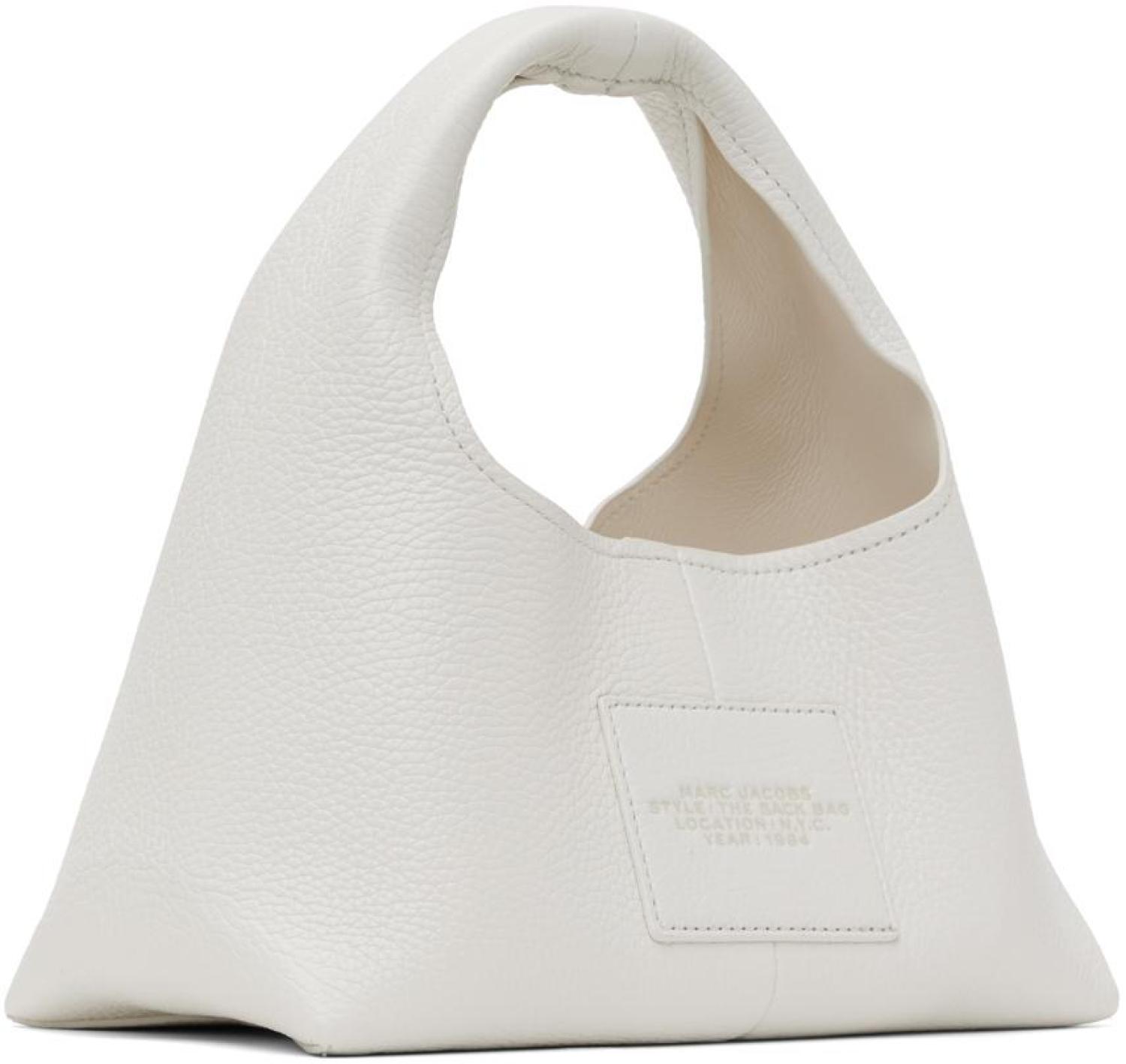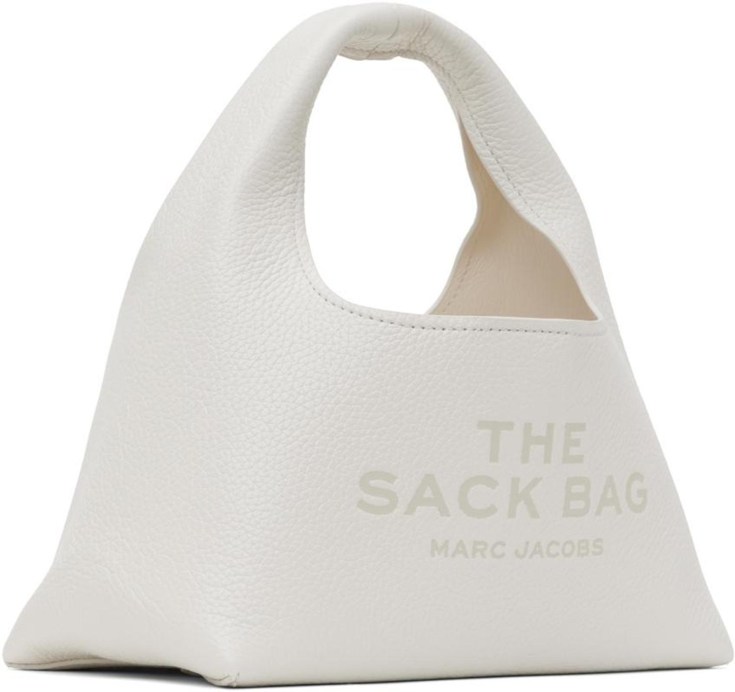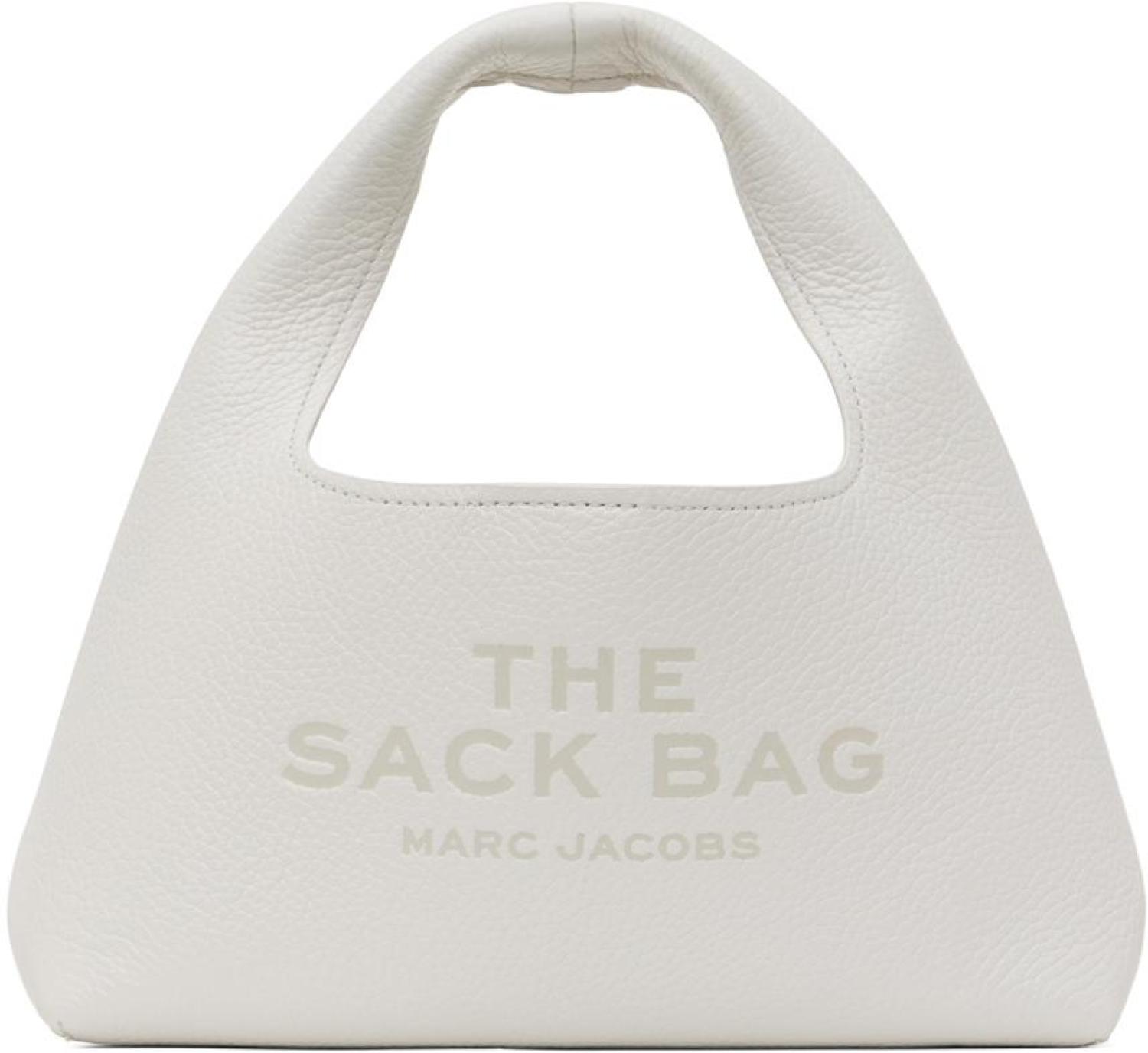 Marc Jacobs White 'The Mini Sack Bag' Tote Grained leather tote in white. Logo and text embossed at face. · Fixed carry handle · Leather logo patch at back face · Magnetic closure · Detachable zip pouch at interior · Leather lining · H5 x W12 x D5 in Supplier color: White Leather. Made in Viet Nam. 232190F049164