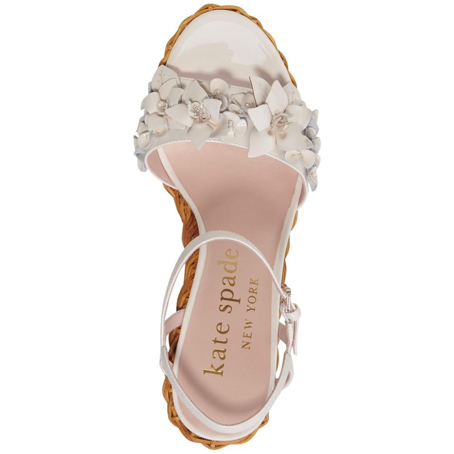 • Floral accents and basketweave heels bring whimsical dimension to a dressy lift in the Fiori sandals from Kate Spade New York.