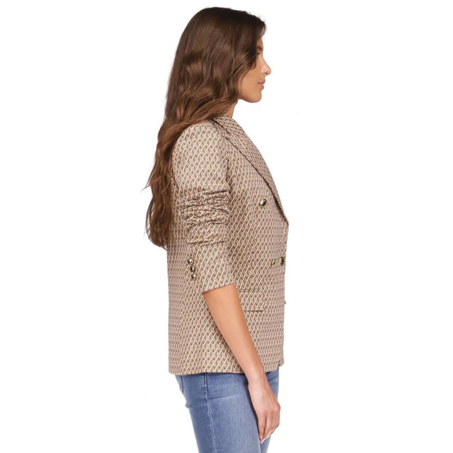 • Weekend fun with office polish. This MICHAEL Michael Kors blazer adds a sleek geometric print to stylish peak lapels.