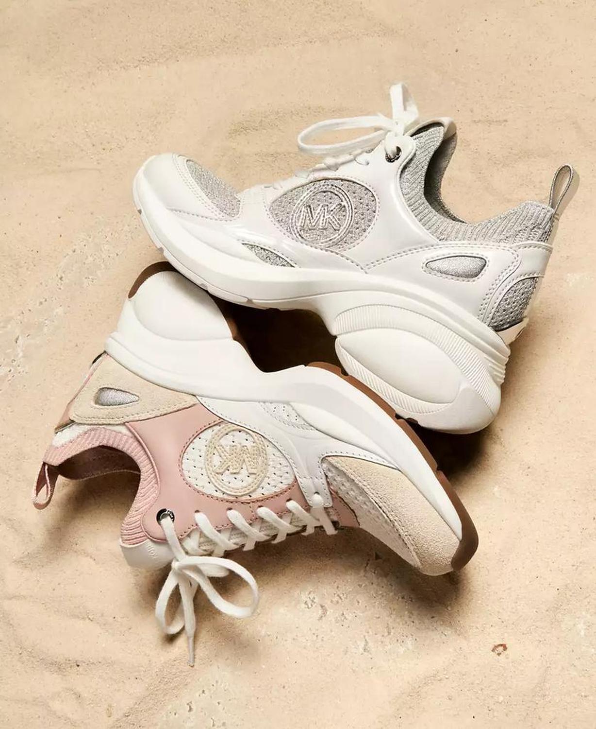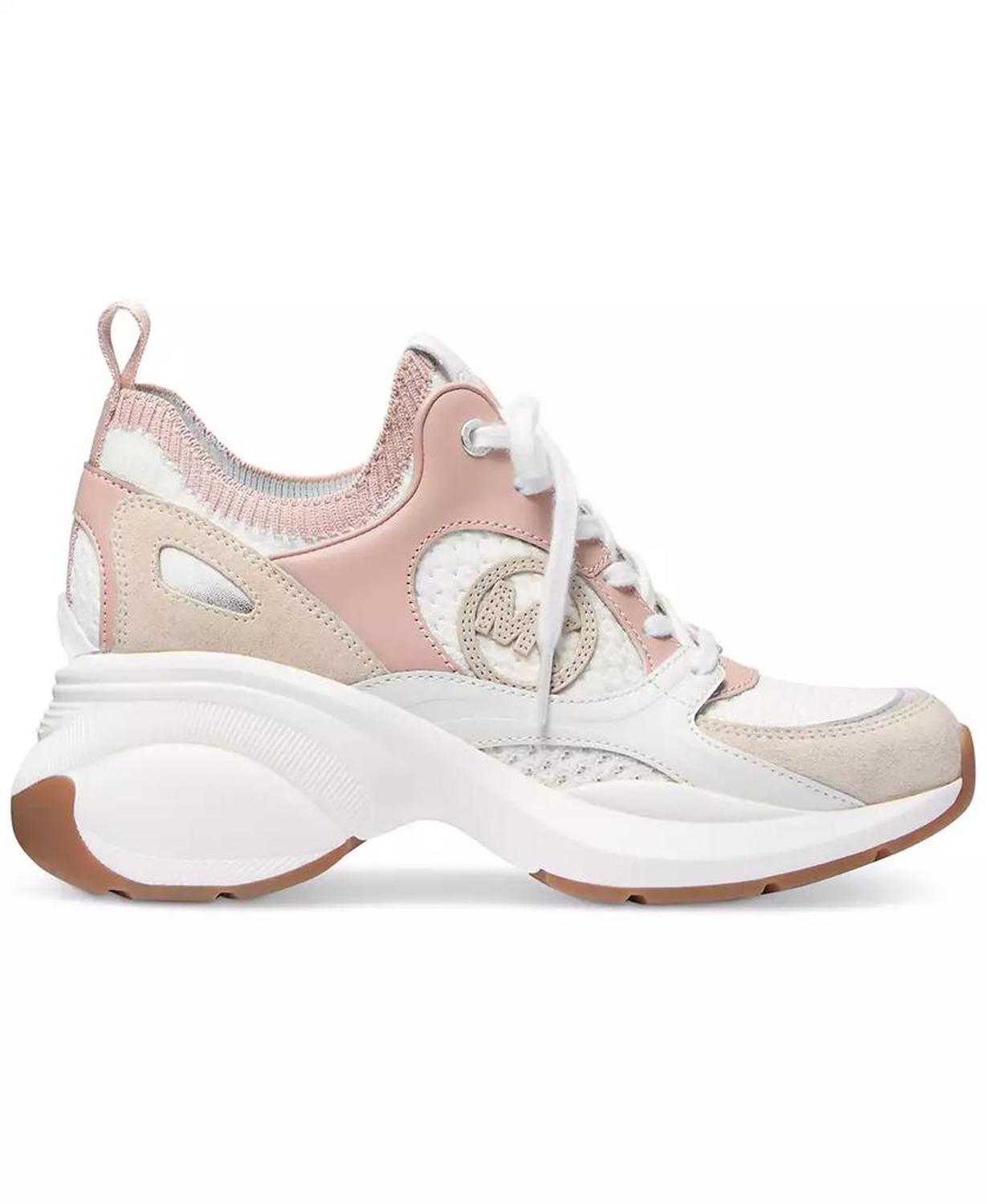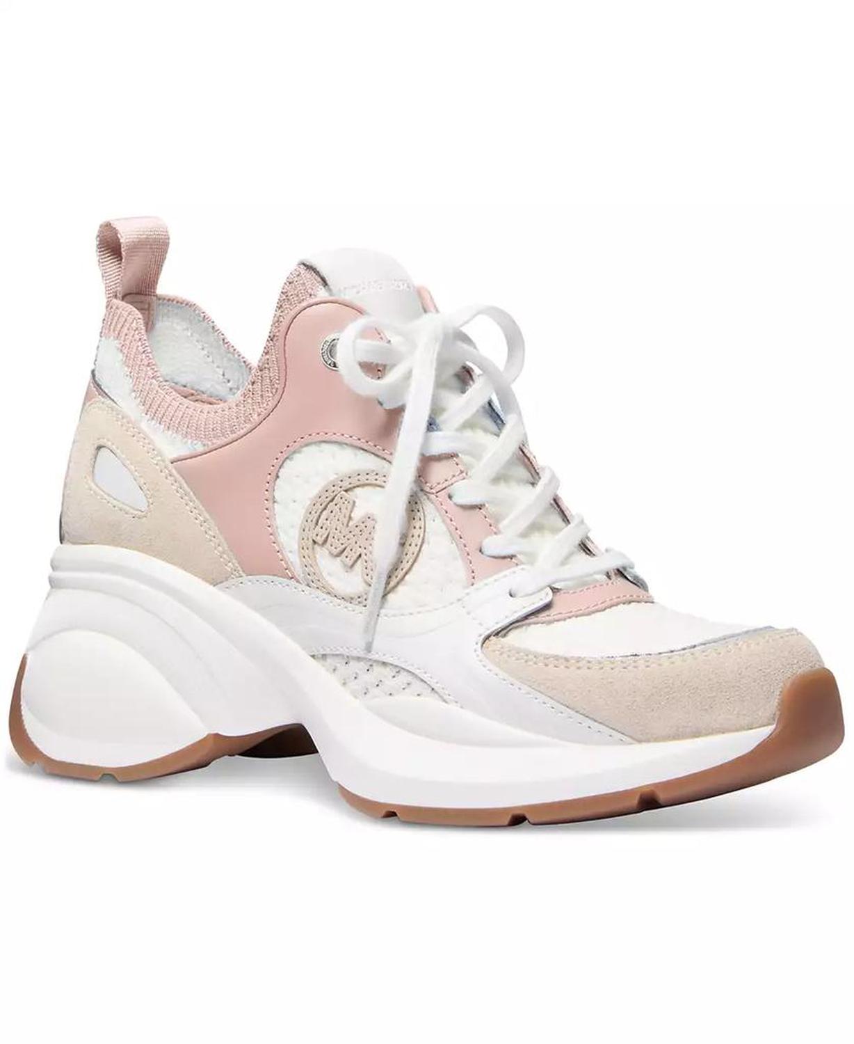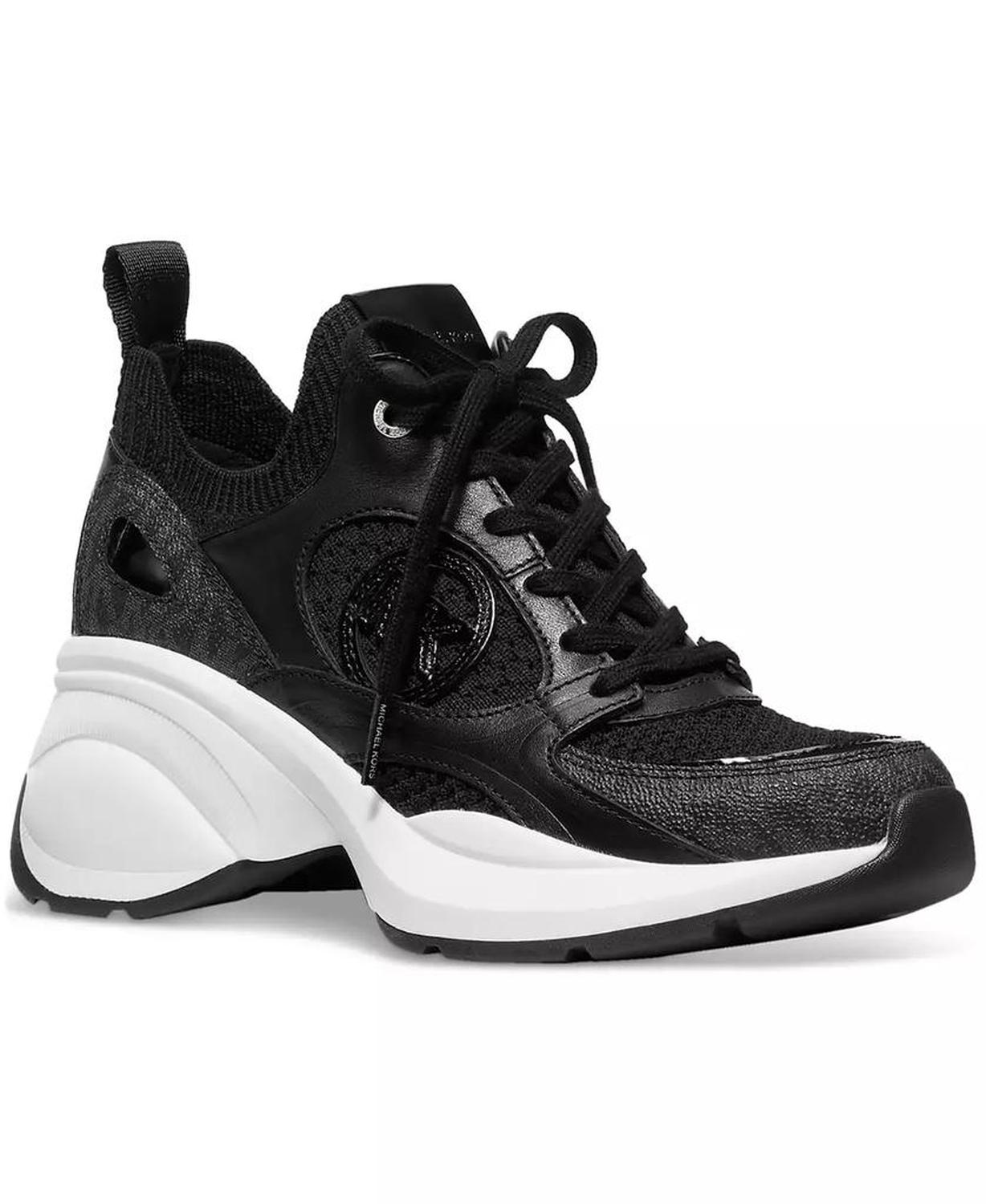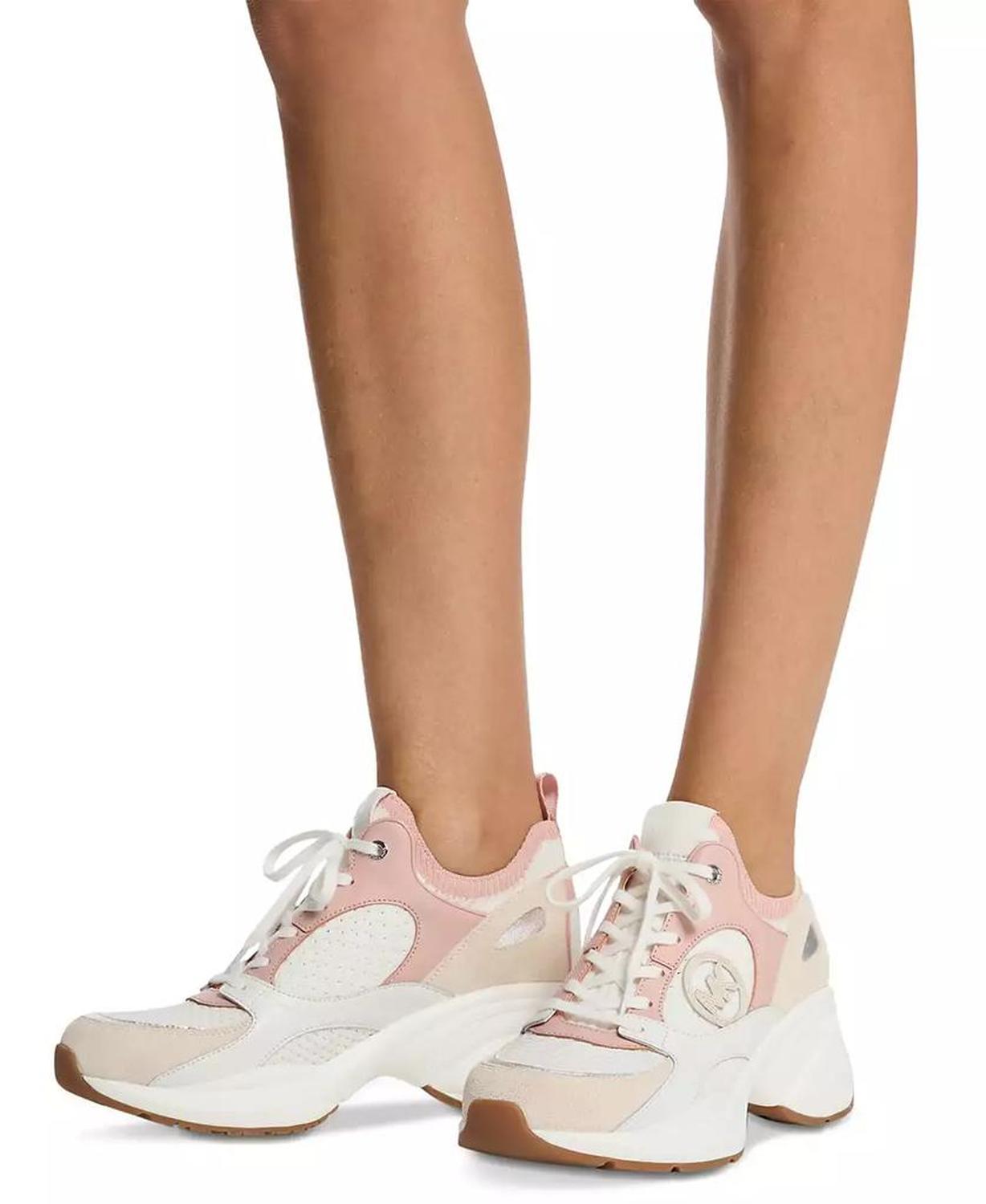 Sporty wedge heels elevate a go-to trainer look in the mixed-media design and classic laced profile of the MICHAEL Michael Kors Zuma sneakers. Heel: 2-3/4" Almond toe Lace up Upper: fabric, leather, synthetic or fabric, suede, leather; lining: manmade; sole: rubber Imported