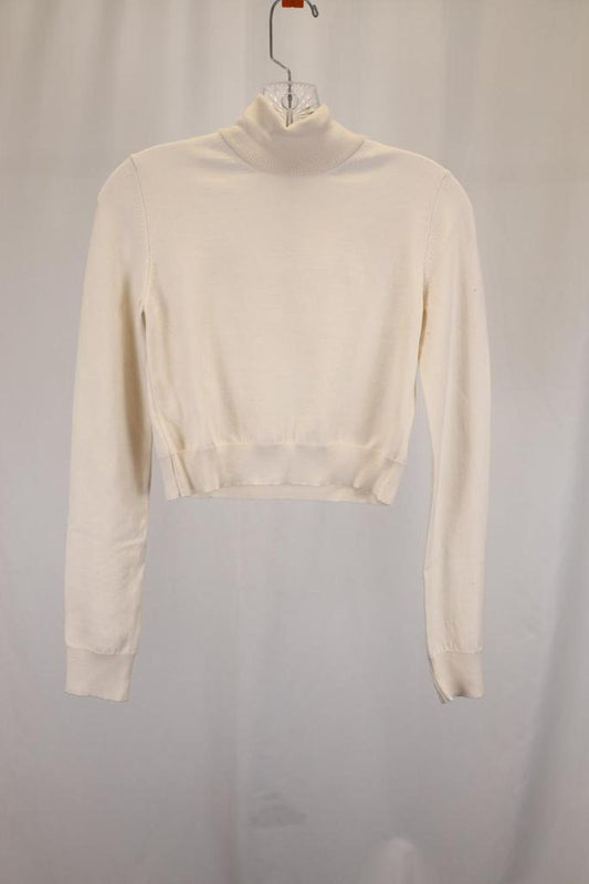 Max Mara Cropped Turtleneck Sweater in Cream Wool