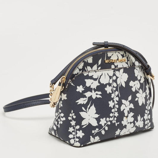 Michael Kors Navy Leather Floral Dome Crossbody Bag