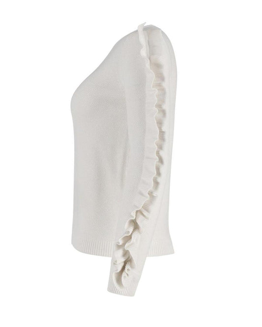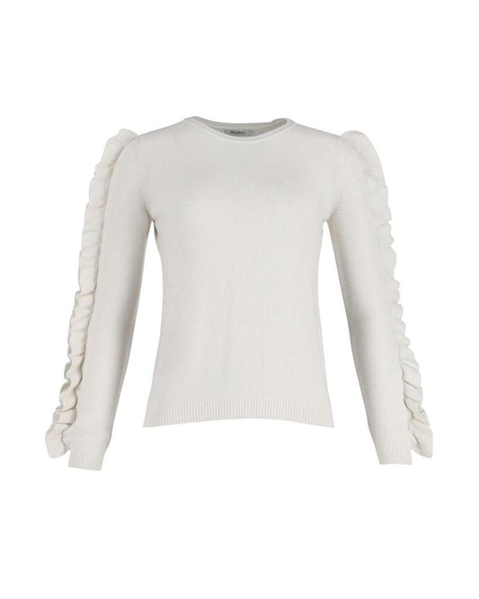 Max Mara Ruffled Sleeve Sweater in White Cotton