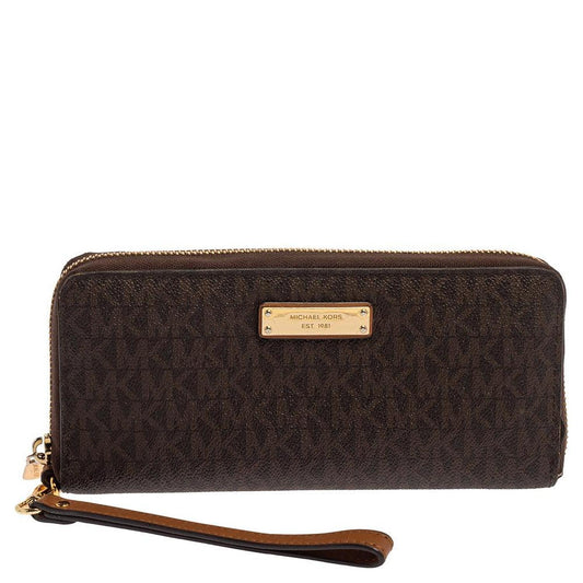 Michael Kors Brown Monogram Coated Canvas Zip Around Wristlet Wallet