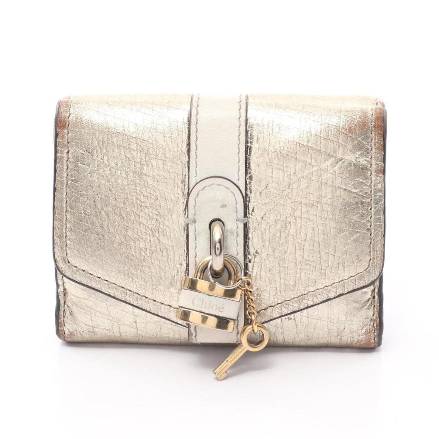 Chloe Aby Abby W Hook Wallet Trifold Wallet Leather Gold Metallic