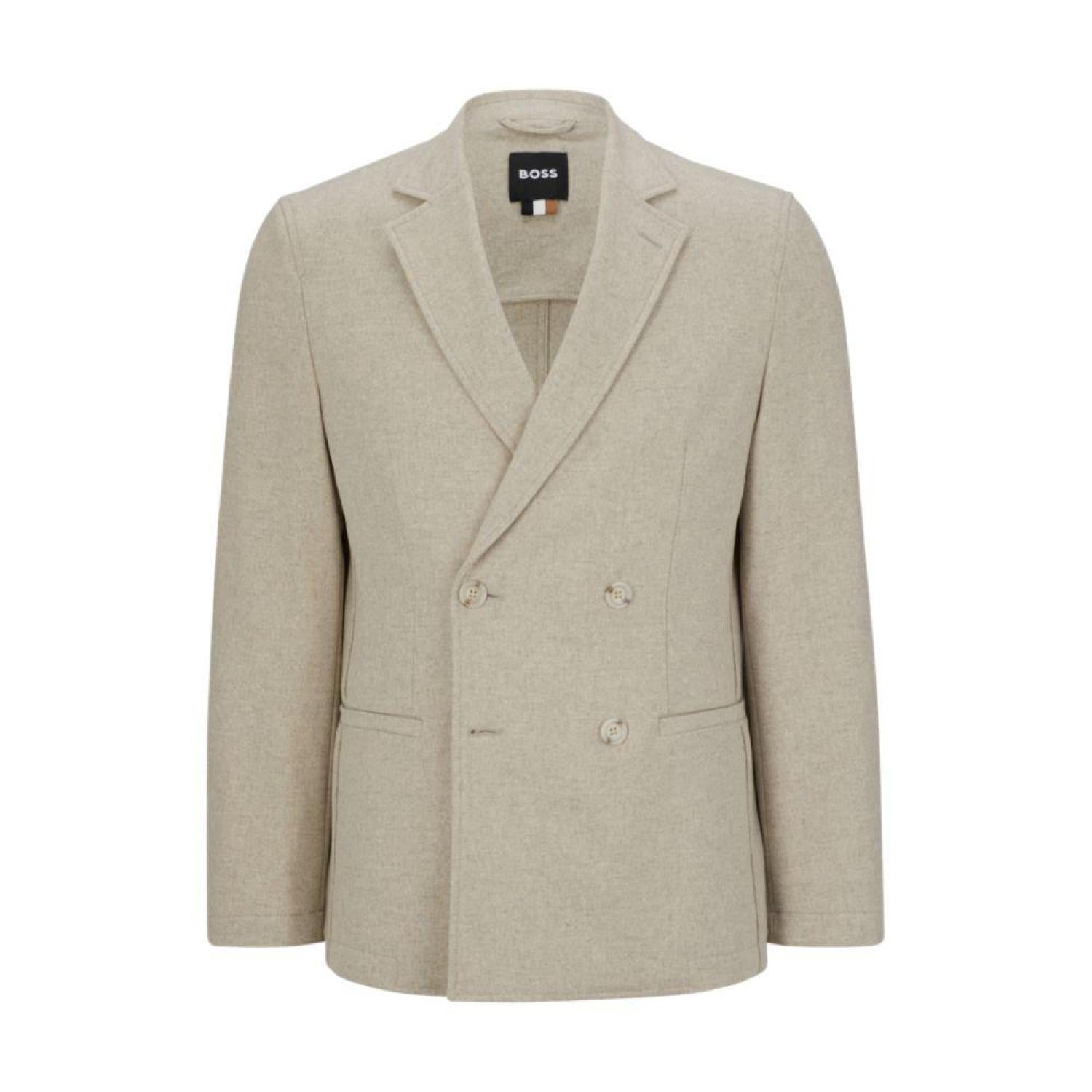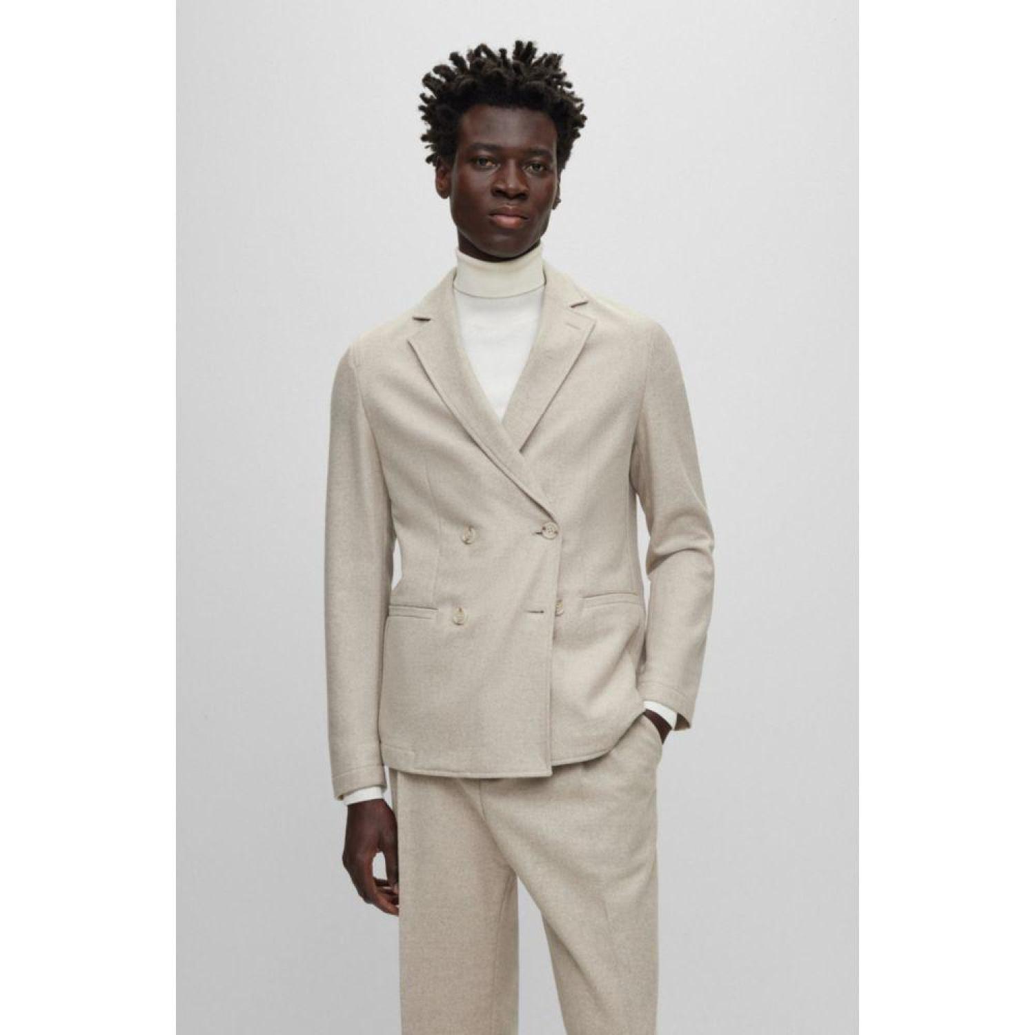 • An unlined, all-gender double-breasted jacket by BOSS, cut to a straight fit in melange fabric and detailed with notch lapels.