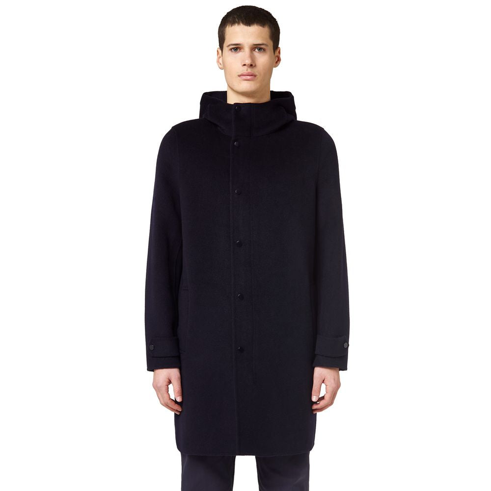 Alpha Studio wool parka coat with hood, button and zipper closure, two side pockets