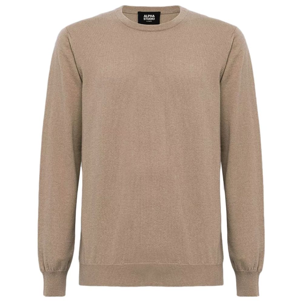 Alpha Studio crew neck sweater in wool and cashmere, ribbed cuffs, hem and collar