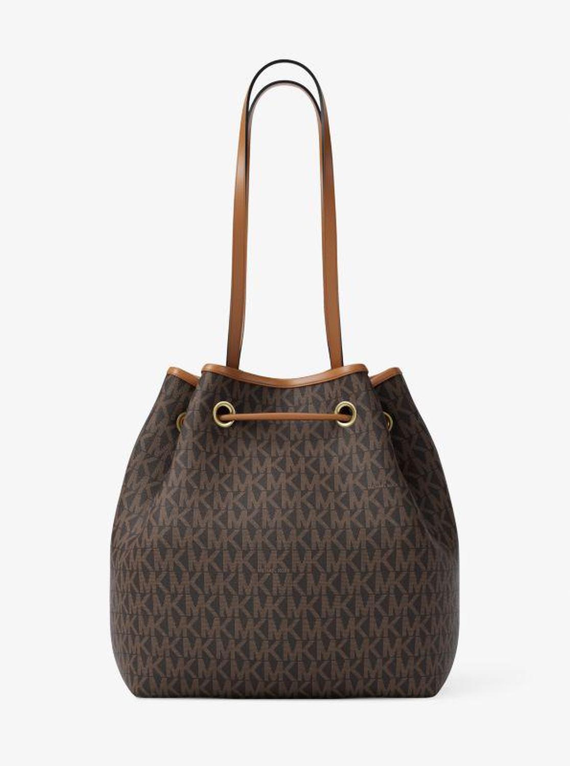 Whether you’re jetting off for business or a weekend away, the Avery carries all the essentials. A logo print exterior with high-shine hardware channels timeless glamour, while a functional drawstring silhouette lends a transformative effect. Use the inside pockets to keep your belongings safe.