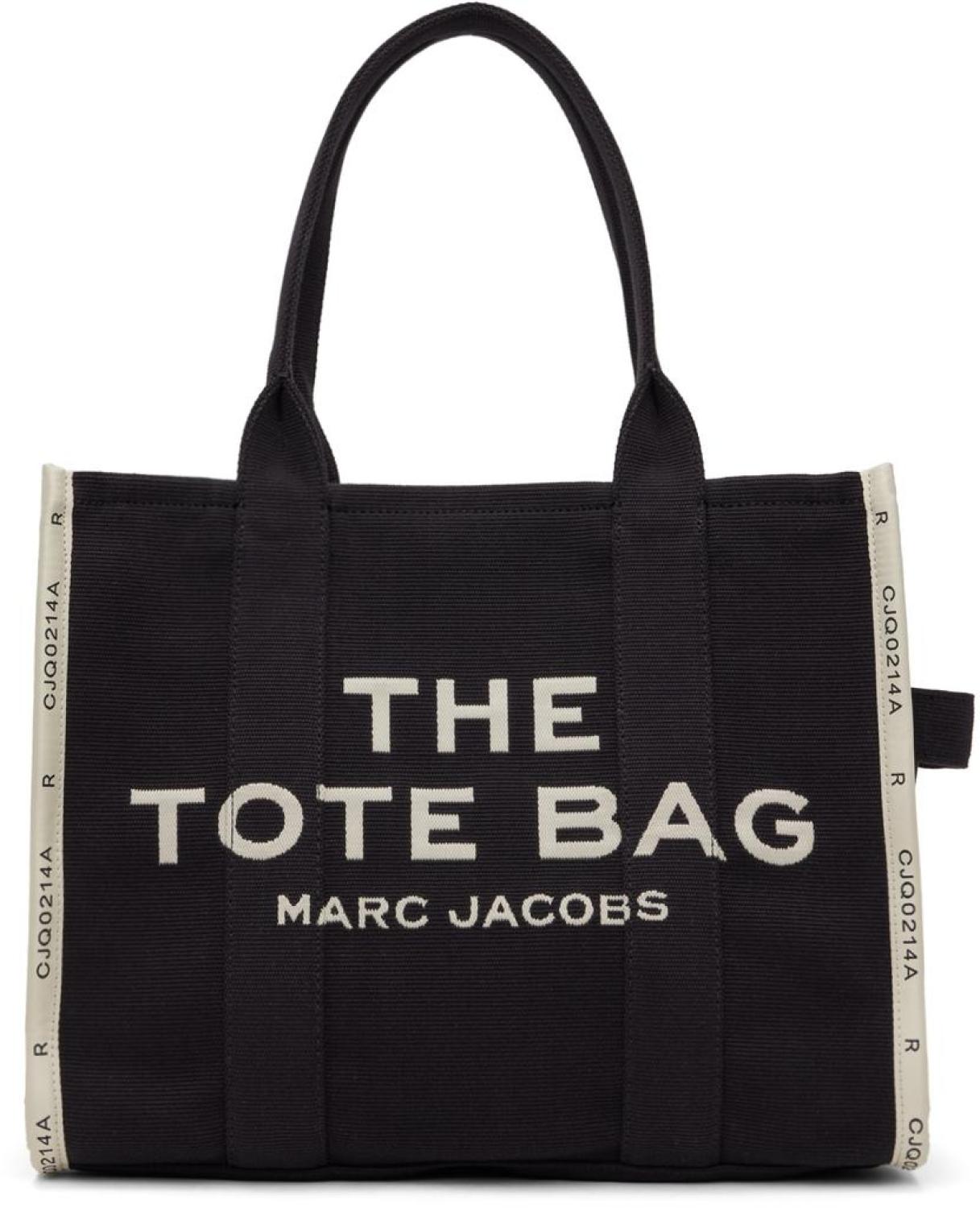 Cotton canvas tote in black. Jacquard text and logo at face and sides.