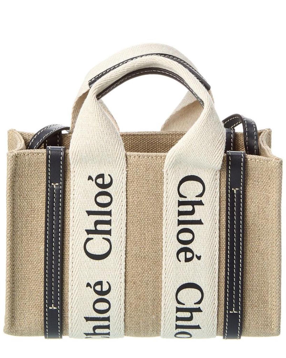 Chloé Woody Mini Canvas & Leather Tote