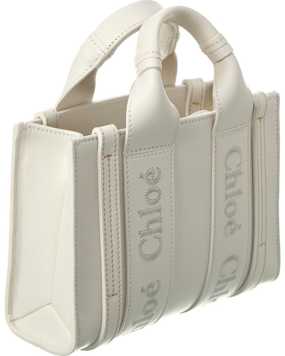 • Introducing the Chloé Woody Mini Leather Tote, a must-have addition to any fashion-forward woman's collection. Crafted with exquisite attention to detail, this handbag embodies the brand's signature blend of romantic, cool, and glamorous style.Made in Italy, the Woody Mini Leather Tote showcases Chloé's dedication to quality craftsmanship. It features a stunning white leather exterior with delicate logo embroidery, exuding sophistication and refinement.Step inside and discover the thoughtfully designed interior, complete with a canvas lining and an interior pocket. This practical storage solution keeps your essentials organized and easily accessible, whether you're heading to the office or going out for a stylish evening.With dimensions measuring 8 inches wide, 5.5 inches high, and 2 inches deep, this mini tote offers the perfect balance between functionality and elegance. The top handles have a drop of 3 inches, while the shoulder strap allows for versatile carrying options with a drop of 21 inches.The open top design of this tote bag ensures effortless accessibility to your belongings, making it convenient for busy women on the go. Please note that all measurements were taken by hand, and slight variations may occur, adding a unique touch to each piece.Rest assured that when you purchase from us, you are getting a 100% genuine Chloé product. While we occasionally source from trusted independent suppliers, we always guarantee the authenticity of every item we sell on our site.Elevate your fashion game with the Chloé Woody Mini Leather Tote. Order now and experience the perfect blend of timeless elegance and contemporary style.