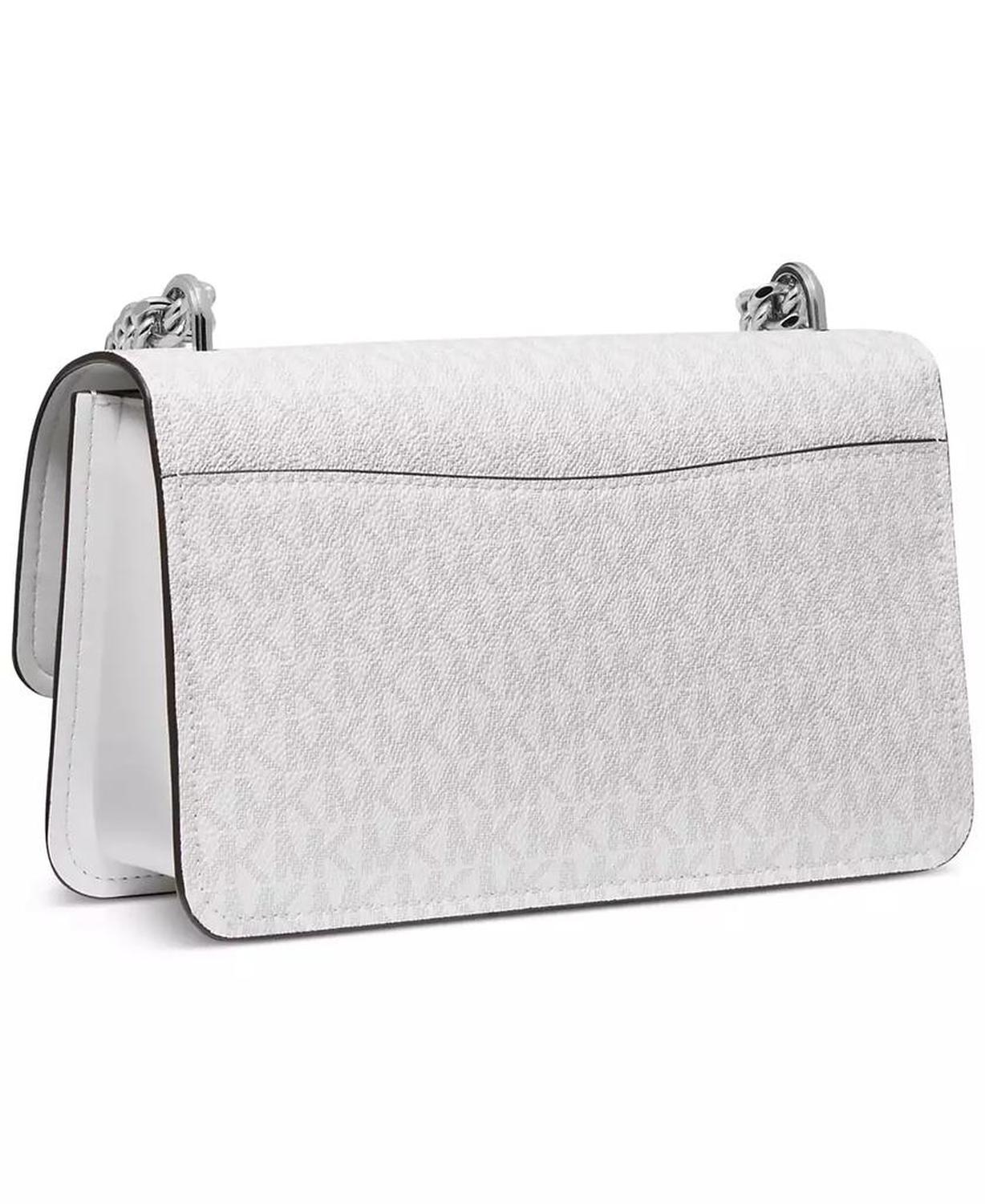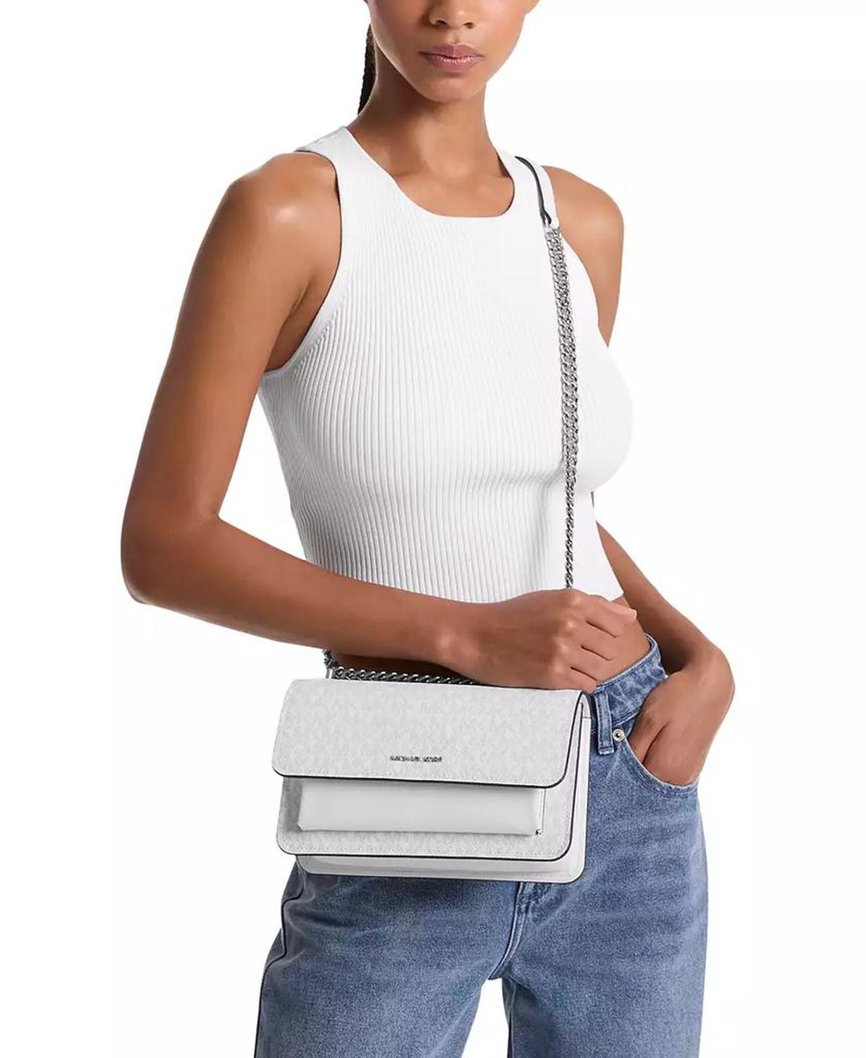 • Sleek and streamlined, this MICHAEL Michael Kors shoulder bag features a classic magnetic flap closure and an adjustable slim strap with gleaming chain-link details.
