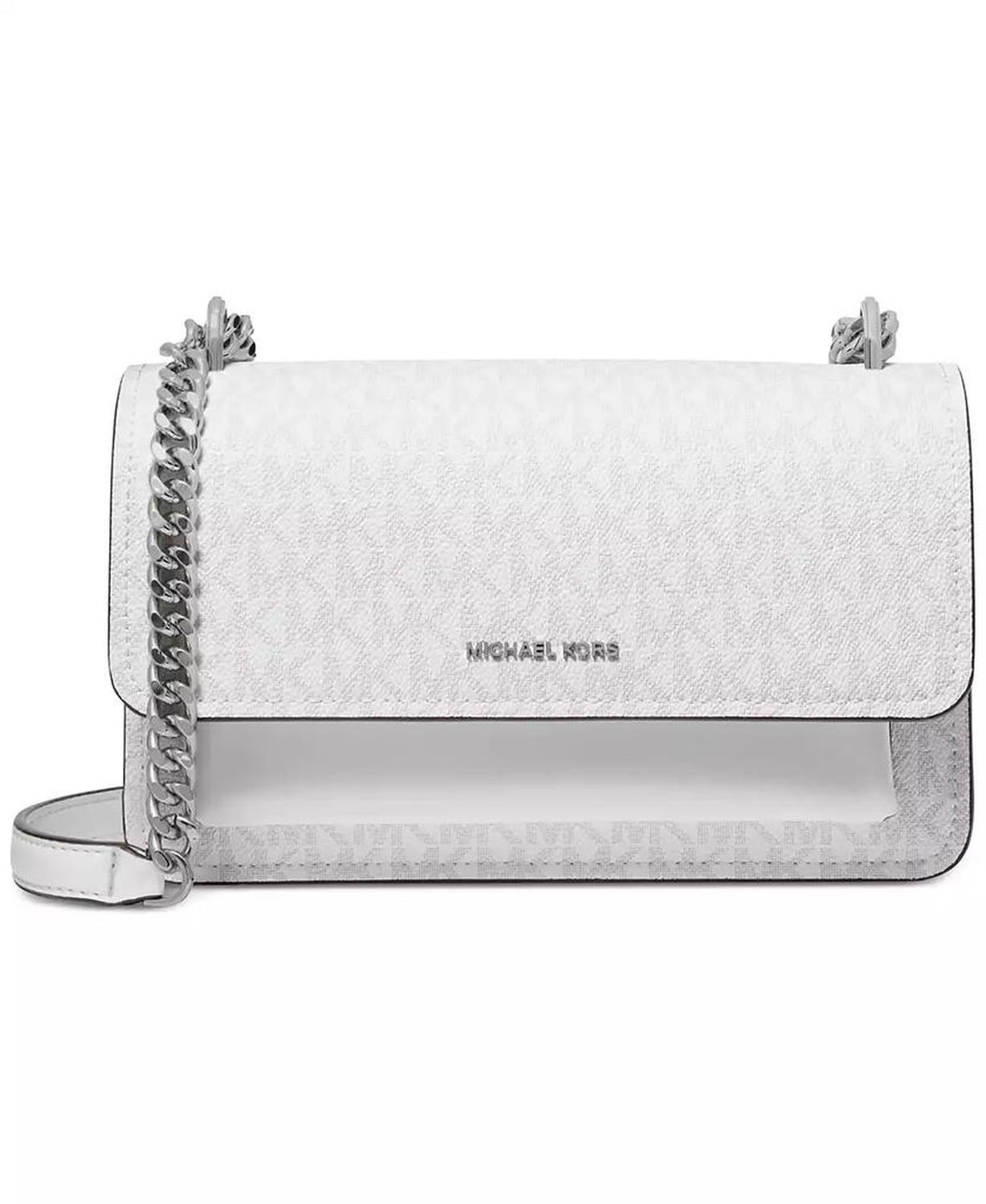 Sleek and streamlined, this MICHAEL Michael Kors shoulder bag features a classic magnetic flap closure and an adjustable slim strap with gleaming chain-link details.