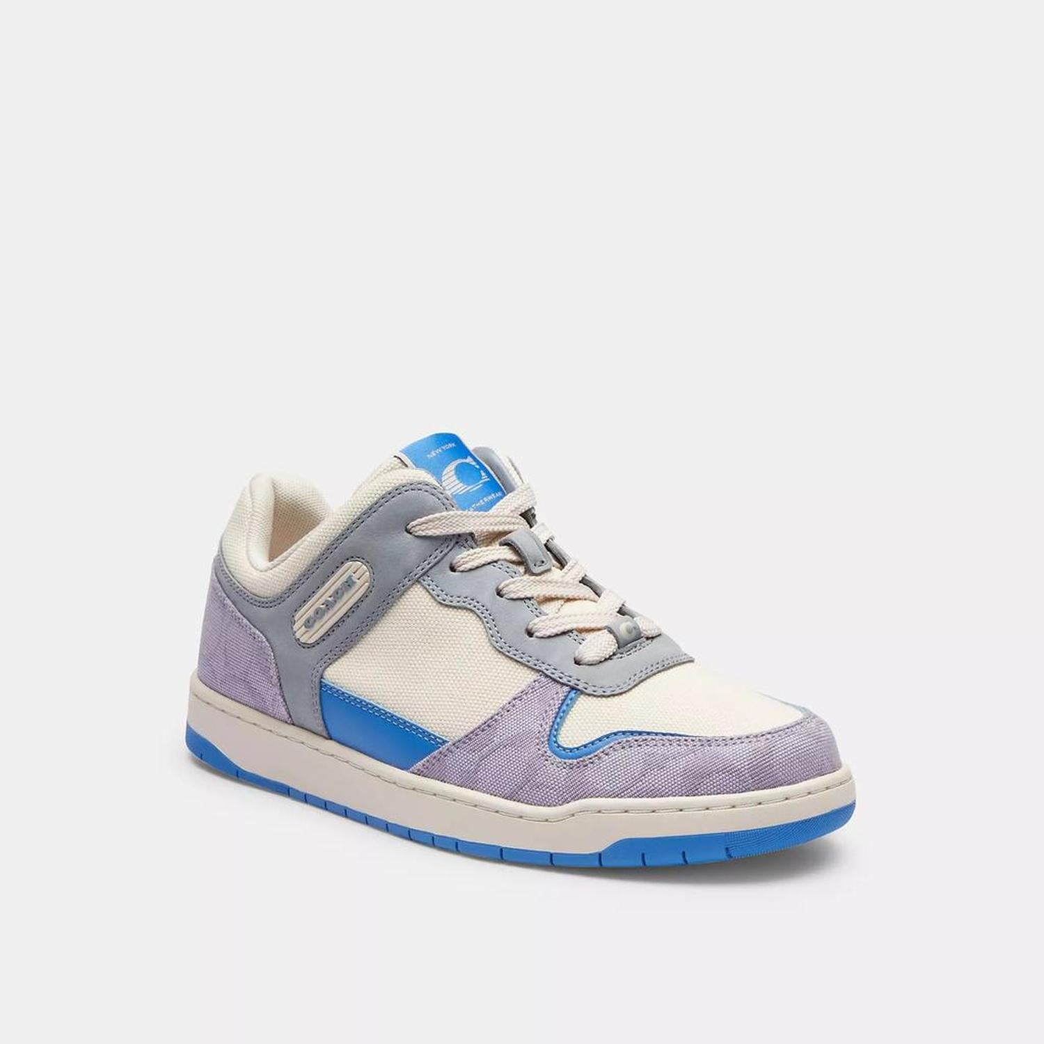 Signature canvas canvas suede and leather upper Fabric lining and footbed Rubber outsole Lace-up closure Style No. CS100 | Coach Outlet C201 Low Top Sneaker In Signature Canvas - Multi, Size - 6