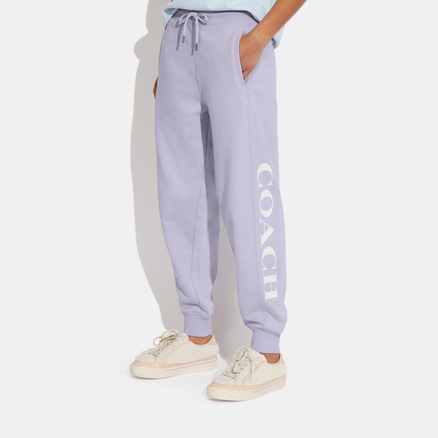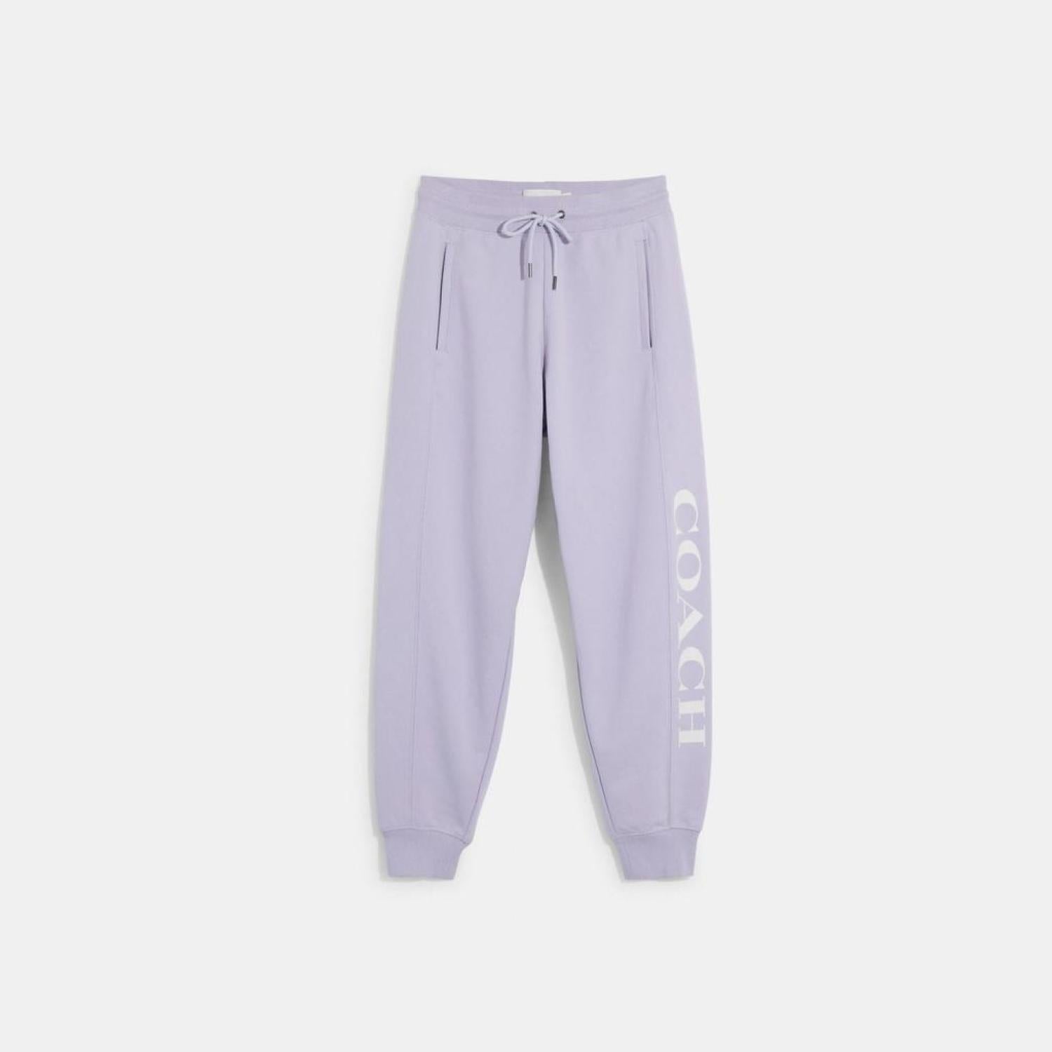 55% organic cotton 45% cotton Drawstring at waistband Slip pockets Inseam - 27 1/2 Model is 5'10 (178cm) chest 31 (79cm) waist 24 (61cm) hips 35 (89cm) and wears a size S Style No. C8783 | Coach Outlet Essential Joggers - Purple, Size - Large