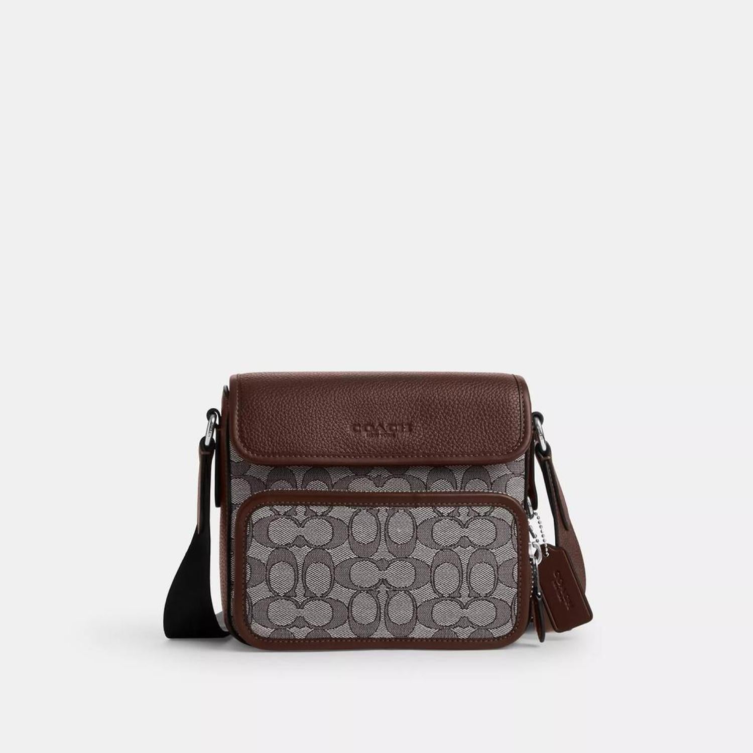 Signature jacquard and refined pebble leather Inside multifunction pockets Zip and magnetic snap closures fabric lining Outside zip and open pockets Adjustable strap with 25 drop for shoulder or crossbody wear 7 3/4 (L) x 6 3/4 (H) x 3 1/2 (W) Exclusive of trim this Coach piece is crafted of our Signature jacquard made from a blend of organic cotton and recycled polyester Style No. CT834 | Coach Outlet Sullivan Flap Crossbody Bag In Signature Jacquard - Brown