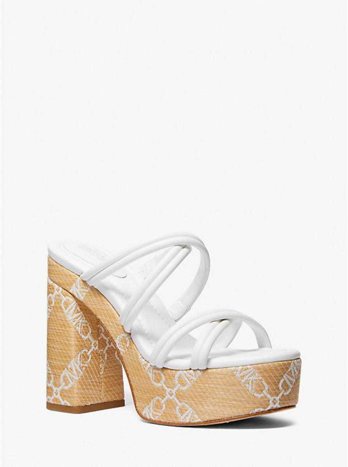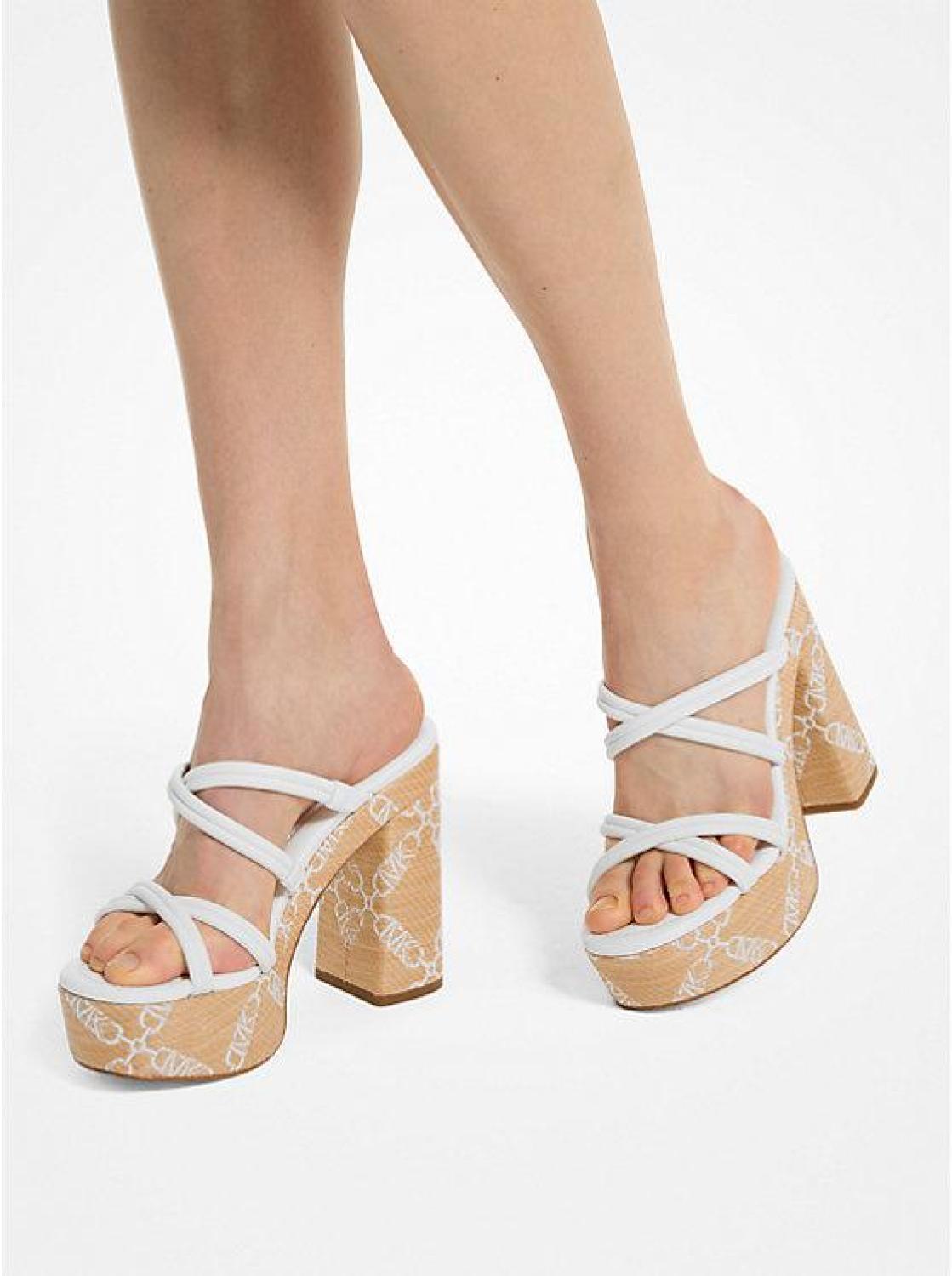 Corrine Empire Logo Jacquard Straw Platform Sandal