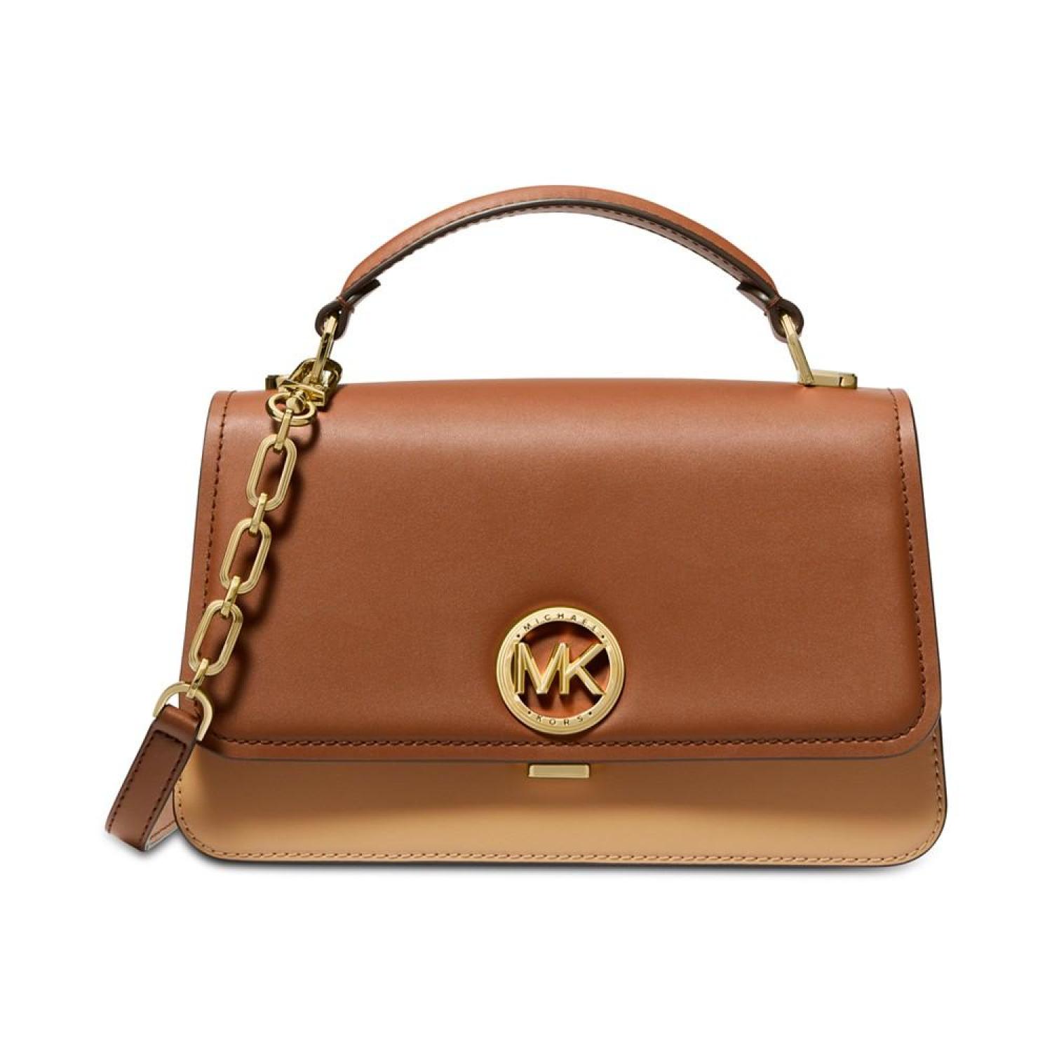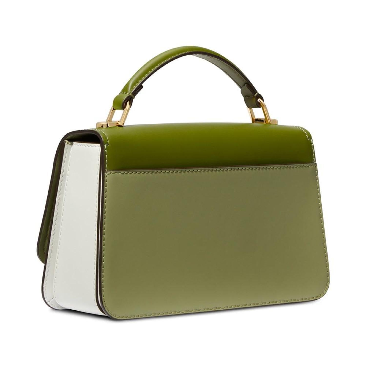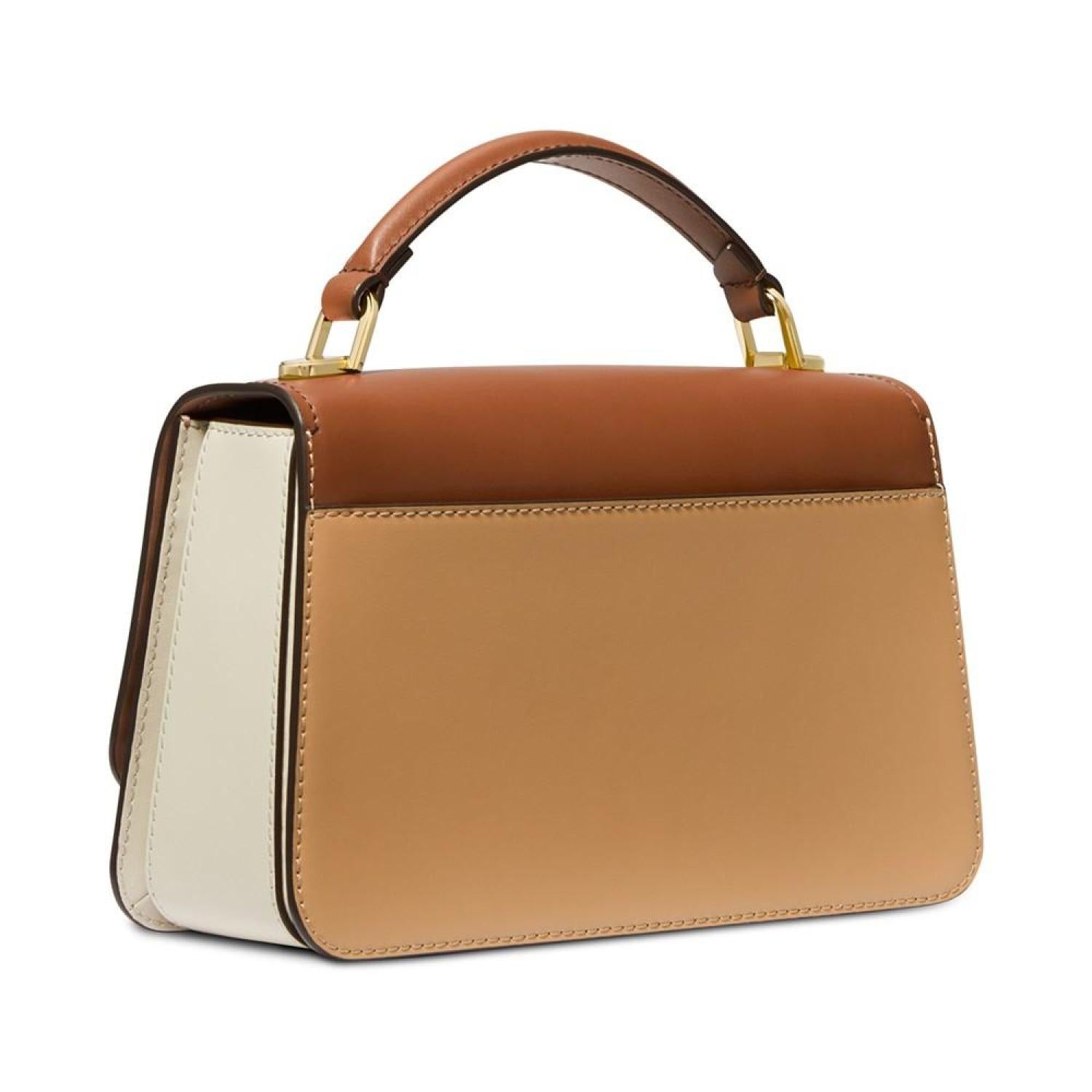 • Keep it classic with this leather satchel by MICHAEL Michael Kors featuring chic color block accented with a bright gold-tone logo at the front.