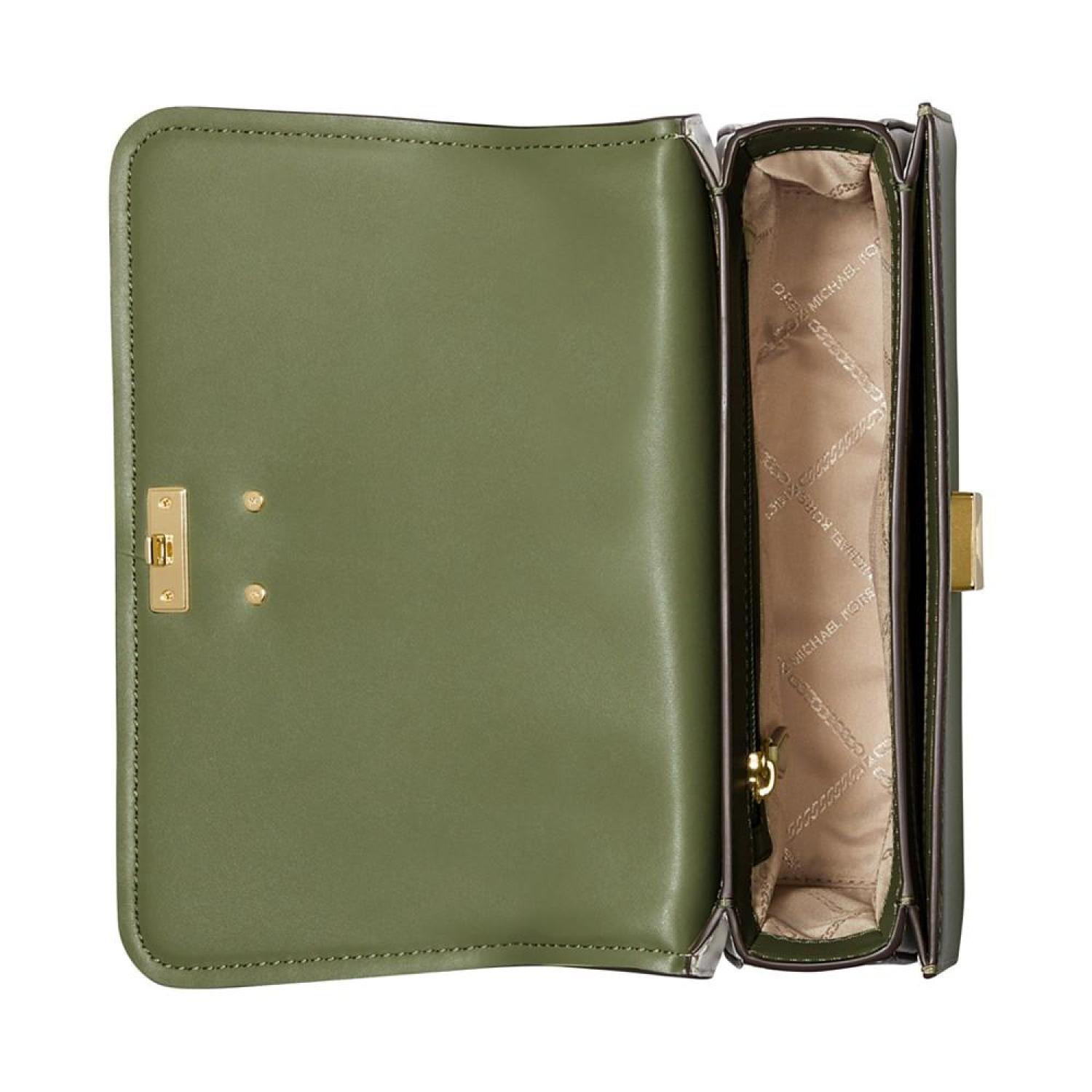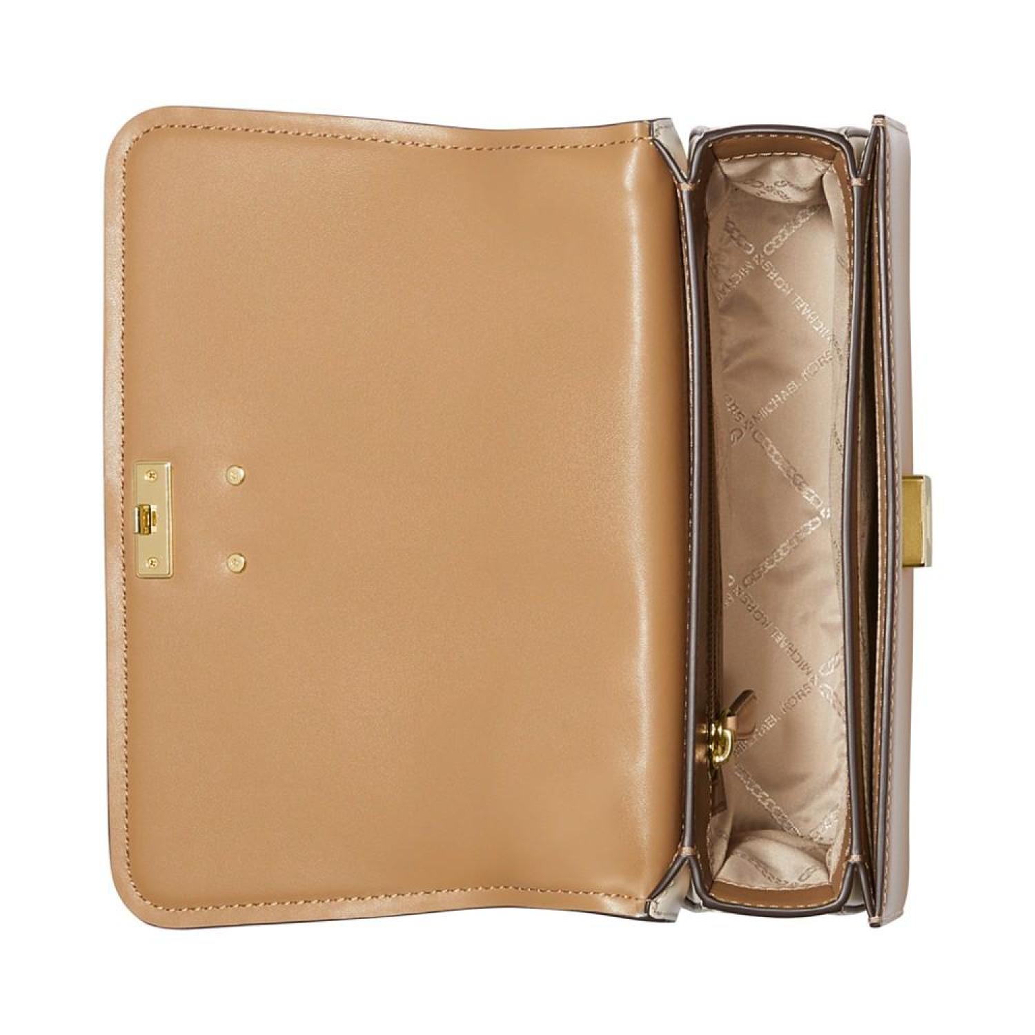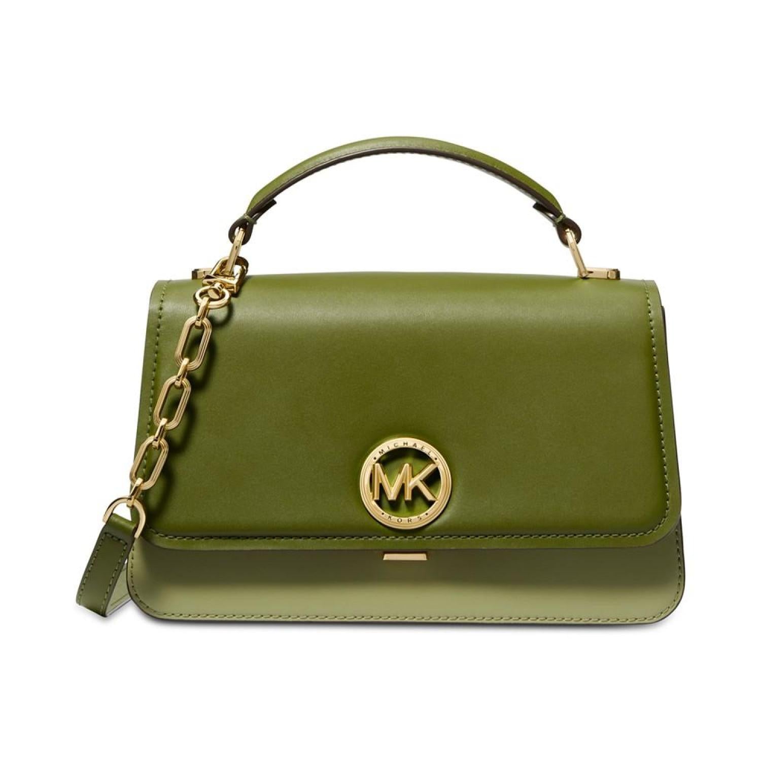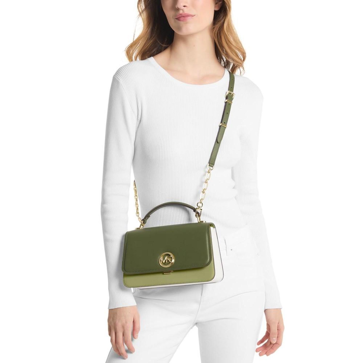 • Keep it classic with this leather satchel by MICHAEL Michael Kors featuring chic color block accented with a bright gold-tone logo at the front.